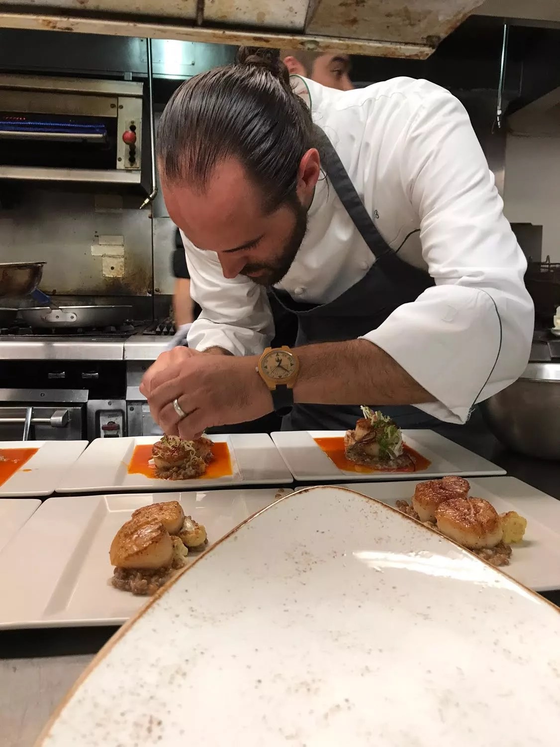 In our Chef and Tell interview with Chris Starkus, the sustainability-focused Urban Farmer chef revealed that he brings his work home with him. After doing a little beekeeping for his restaurant, he built hives in his back yard, where he also maintains a large kitchen garden and a chicken coop. Now he shares photos of those hobbies as a window into his daily life.