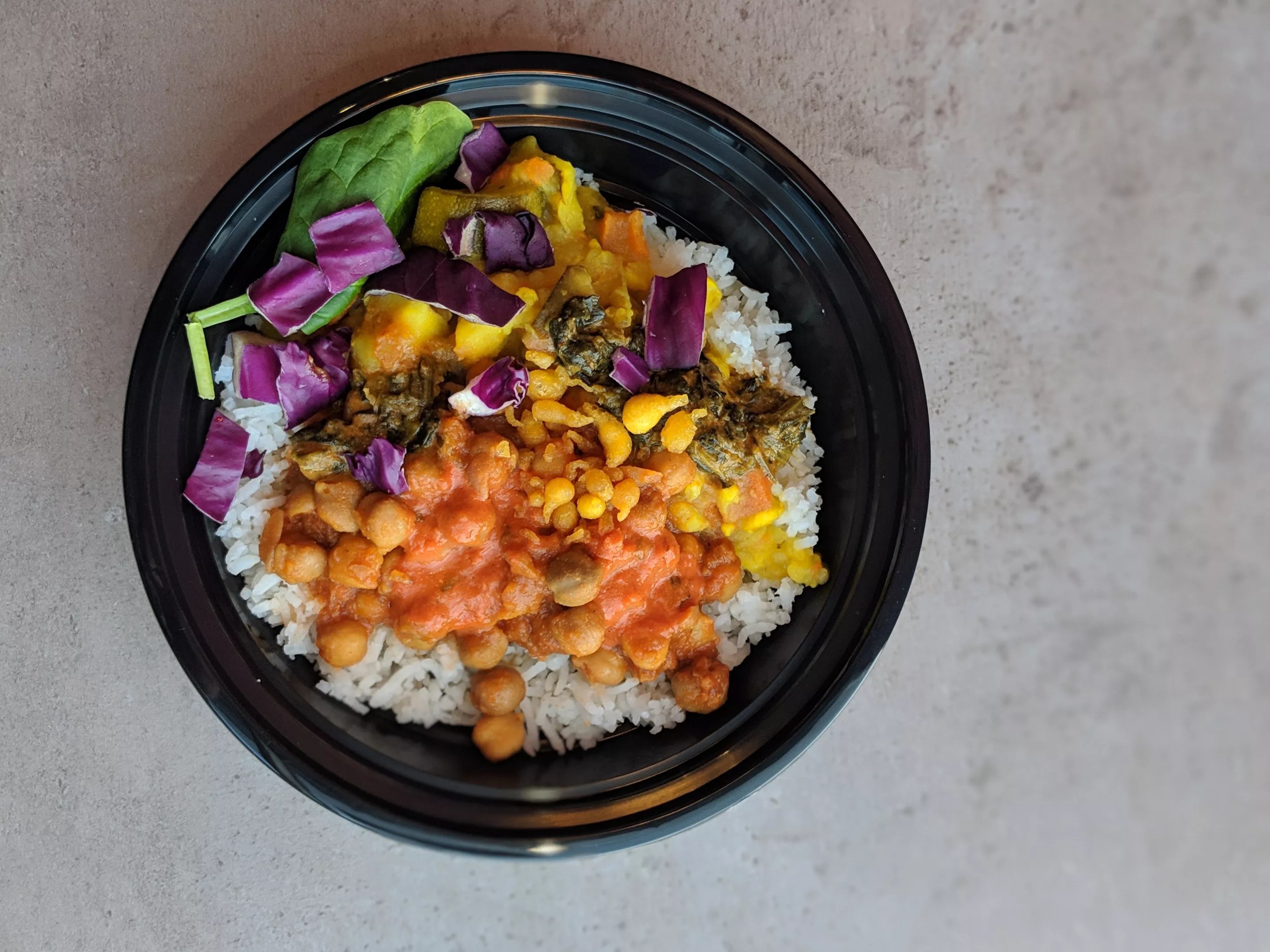 Choice Market is serving vegan specials for breakfast, lunch and dinner. Kick off your day with a quinoa breakfast bowl with JUST Egg, asparagus and salsa verde, or a coconut yogurt and blue-green algae bowl with dates and hemp granola. For lunch, the famous Impossible meat makes appearances in the burger and in meatballs in a couscous bowl. And a mushroom sandwich is topped with dairy-free cheddar, Fresno chiles, charred onions and vegan aioli. Veggie and rice bowls or wraps are customized with six different vegan Indian sauces. Saucy Bombay