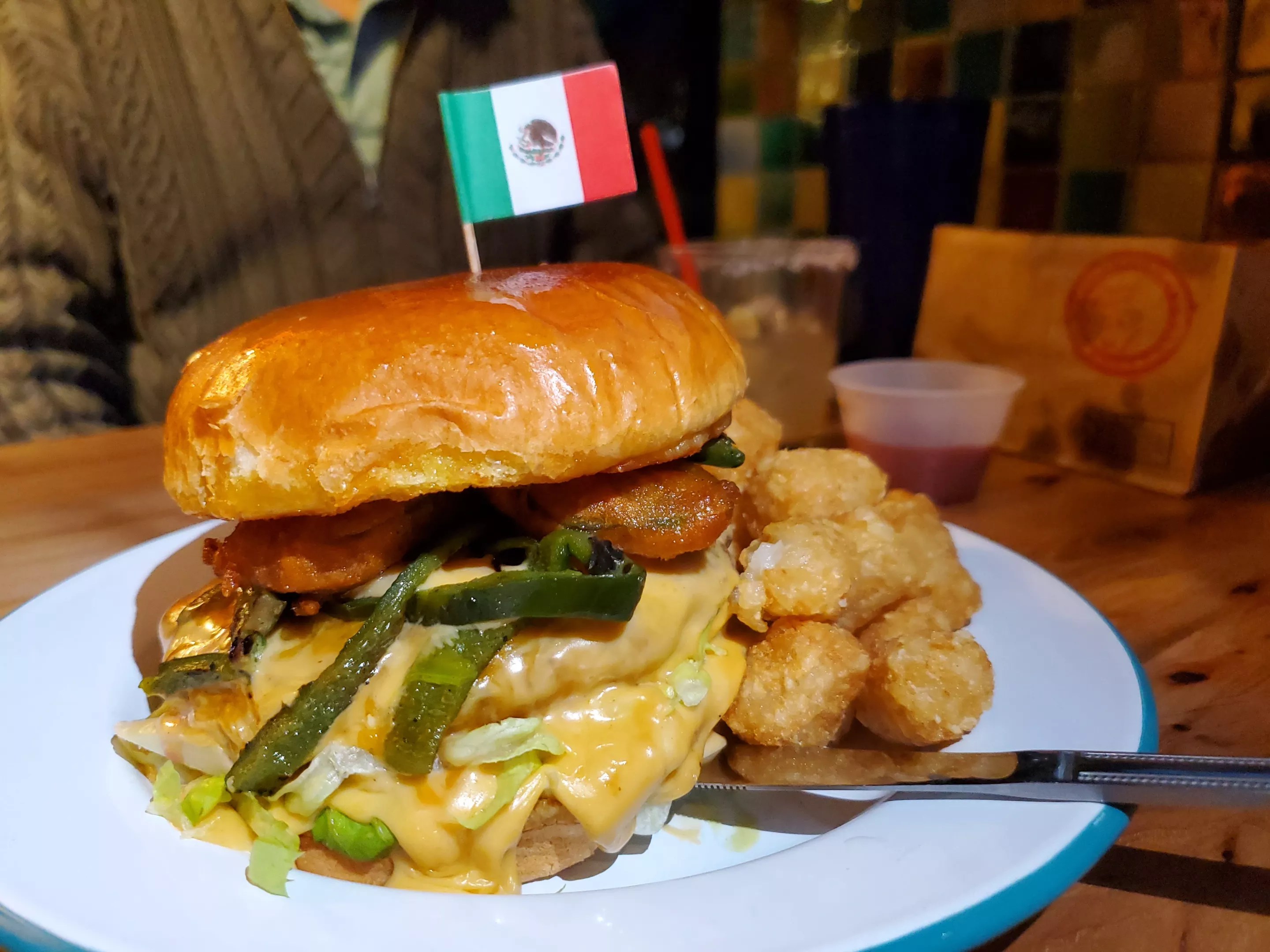 Cochino’s burger doesn’t come with beer cheese, but it is loaded with queso.
