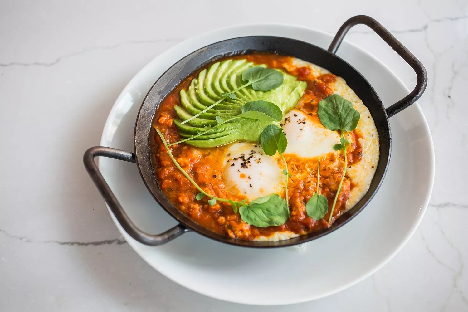 Southern shakshuka benefits from a helping of goat-cheese grits.