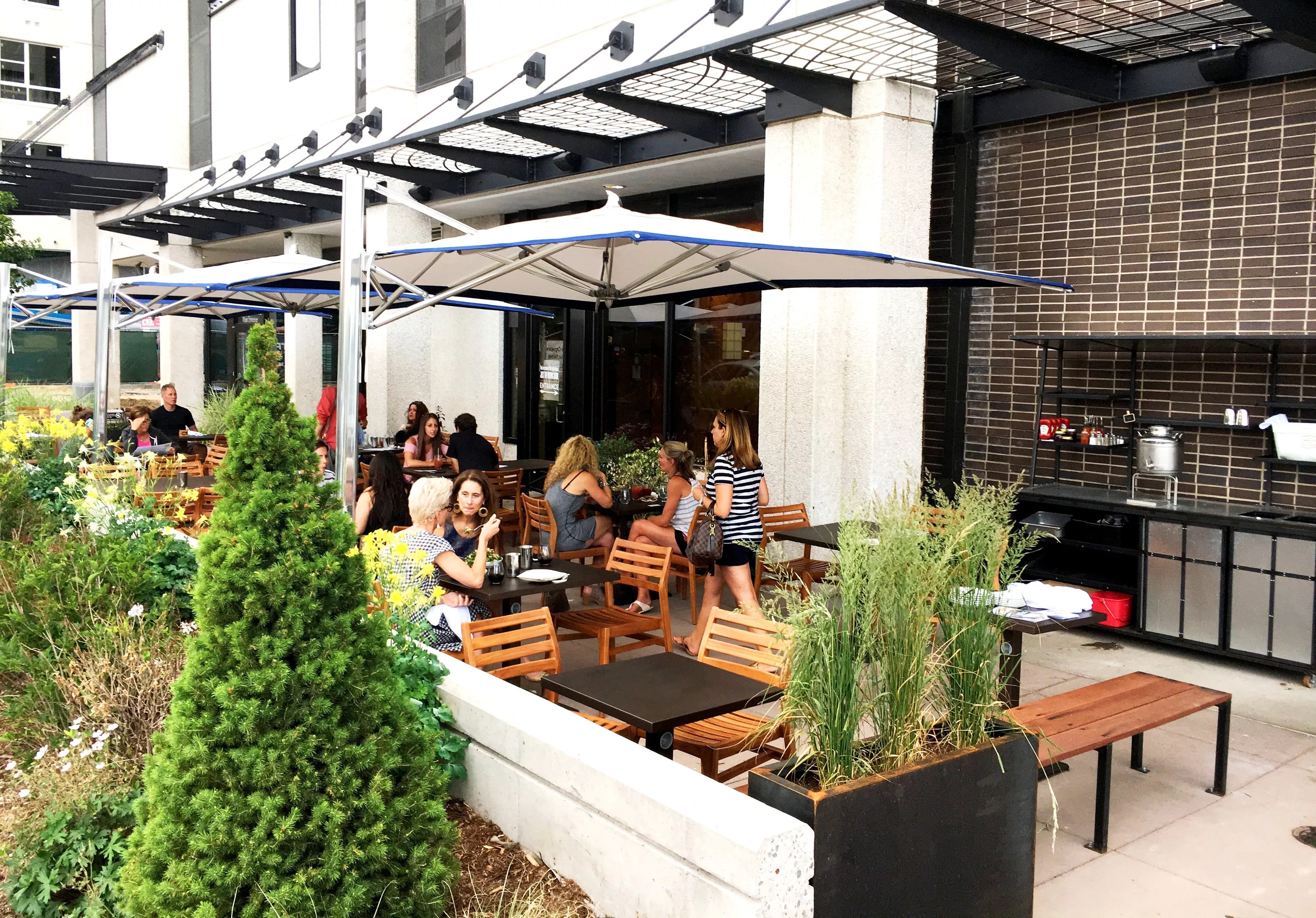 Hearth & Dram Guests on the new patio at Olive & Finch have it made in the shade. Mark Antonation