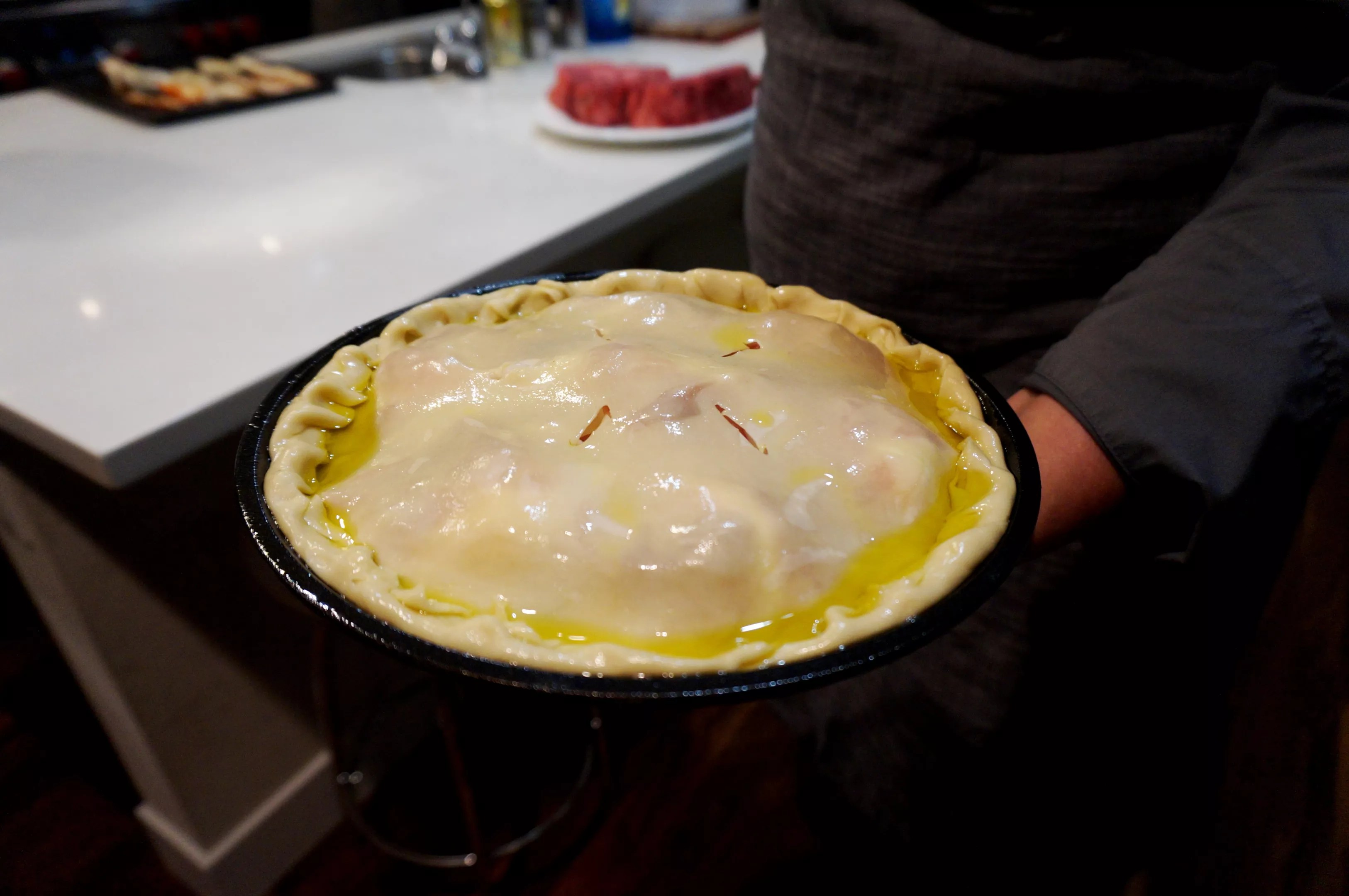 Other uncommon dishes will include Italian pasticcio, a dish first created for Catherine de Medici in the sixteenth century. It’s a kind of pot pie with a savory top crust that hides the Italian princess’s favorite foods: pork meatballs, cheese tortellini and Bolognese sauce. Creamy bechamel and Parmigiano add to the richness of the royal dish. Wiggins notes that in the court of the Medici family, pasticcio was much bigger than her version and came with a domed pastry lid that hid live birds, which would fly out when the crust was broken. (At Cattivella, Wiggins will be skipping the live birds.)