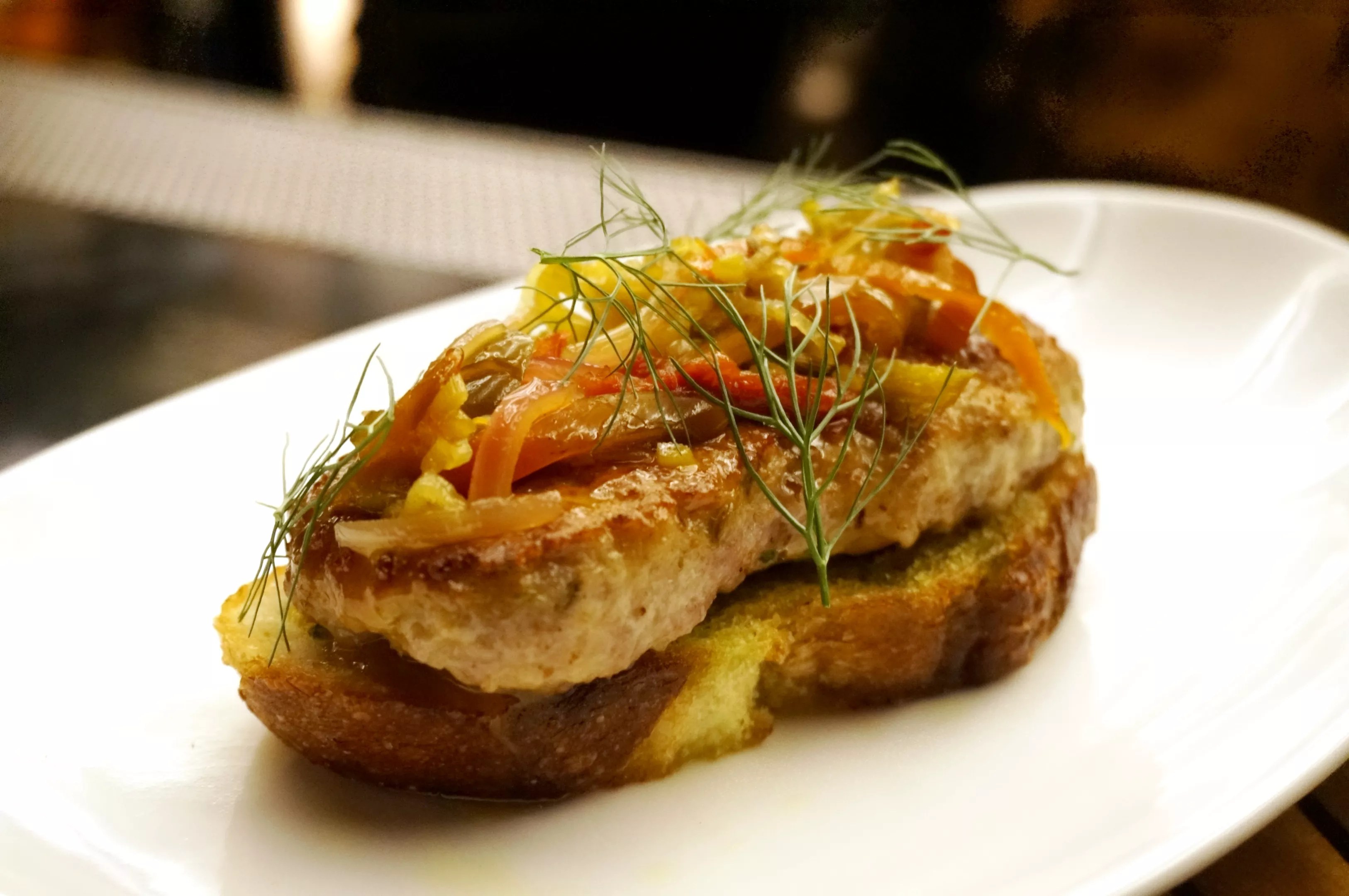 Other bites capture the homey quality of Italian-American cooking, like garlic toast topped with sausage and peppers. But sophisticated hamachi and tuna crudos show off the kitchen’s subtler side.