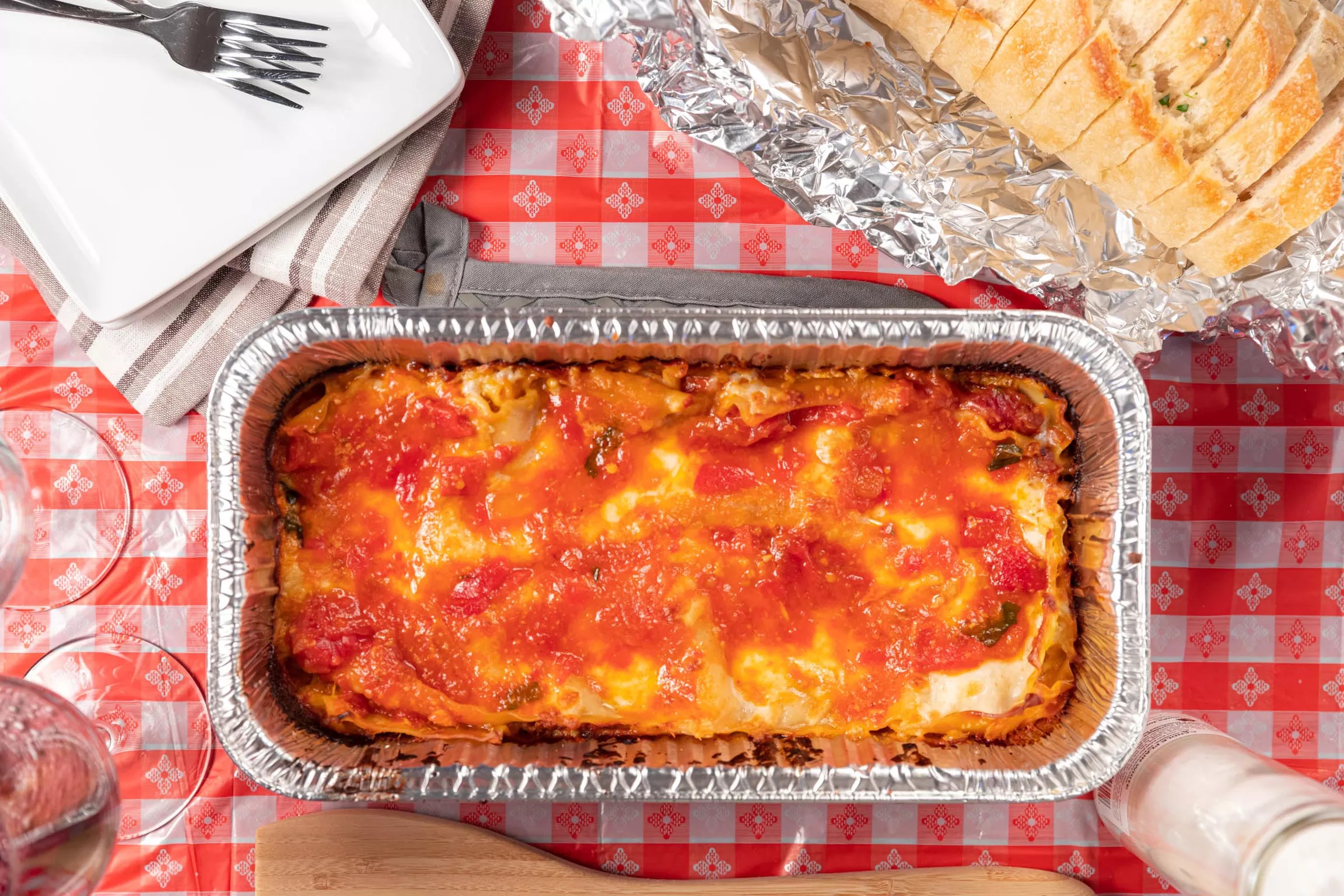 Head to this Berkeley staple for a family-sized lasagna Bolognese. The $42 order comes with a house Caesar salad and bread and serves about four people. Order online for pick-up at the restaurant from 11 a.m. to 8 p.m. daily. Each pan is made to order, so expect a wait time once your order is placed.