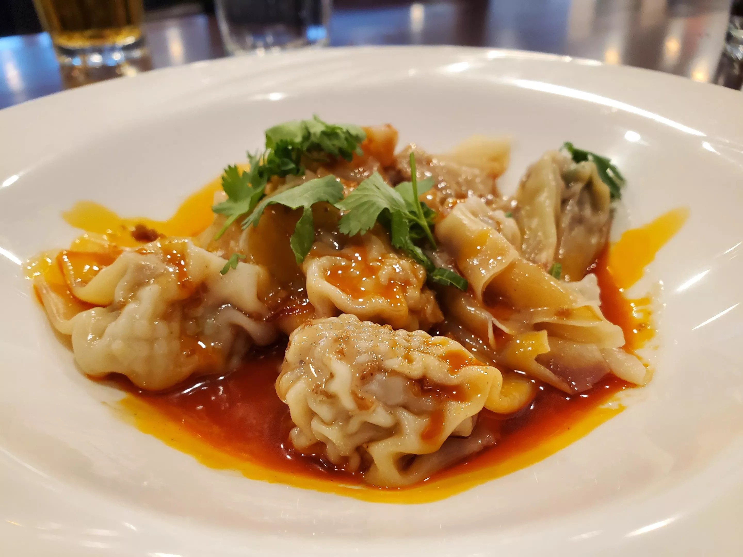 Sichuan chile dumplings come eight to an order.