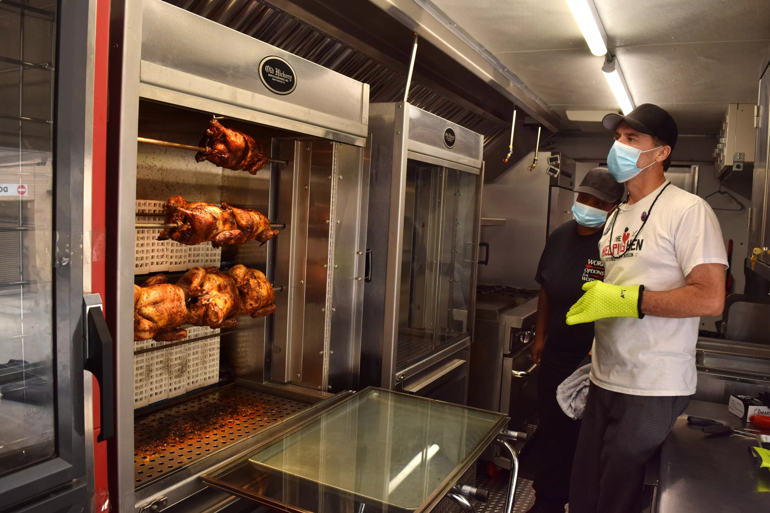 Aside from Helping Hen’s signature rotisserie chicken, the truck serves hearty side dishes like mac and cheese, honey cornbread and mashed sweet potatoes, as well as salads, sandwiches and vegan alternatives. Individual plates cost $8 to $12, and whole-chicken meals plus sides run $26 to $27. Customers can also choose to purchase a “Second Helping” for neighbors facing hunger. All proceeds go toward supporting WOW programming.