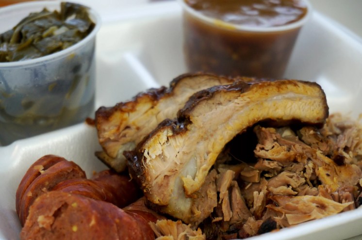 Sam Taylor’s does its barbecue wet — slathered in a thick, sticky, gloss-black sauce, a Tennessee-meets-Kansas City riff that packs both heat and sweet. The gigantic, slow-smoked pork ribs are excellent, as is the pork sandwich (or “poke sammich”); the homemade potato chips actually taste like potatoes, the brisket sandwich is decent, and the steam-table […]