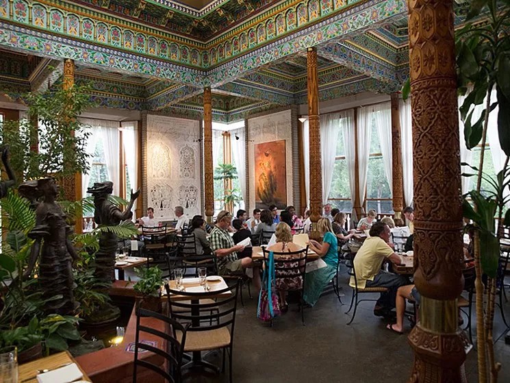 Perhaps you’ve heard about the years-long political struggle to get the City of Boulder to accept the Dushanbe Teahouse after it had already been sent there in boxes — eight years during which the mayor of Dushanbe died without seeing his dream of an exchange fulfilled. Perhaps you know that over the years, the food at Dushanbe has been variable — sometimes terrific, sometimes so-so. But you absolutely can’t argue with the amazing list of teas it serves, teas with names like White Jasmine Moon and Paradise Green, good-for-you teas like Tender Tummy and Feel Better Brew, concoctions that your waitperson will serve with such warmhearted concern that you know she deeply and personally cares about your well-being. Sit on the patio, listen to the snowmelt-swollen creek rush by, sip and meditate on international understanding.