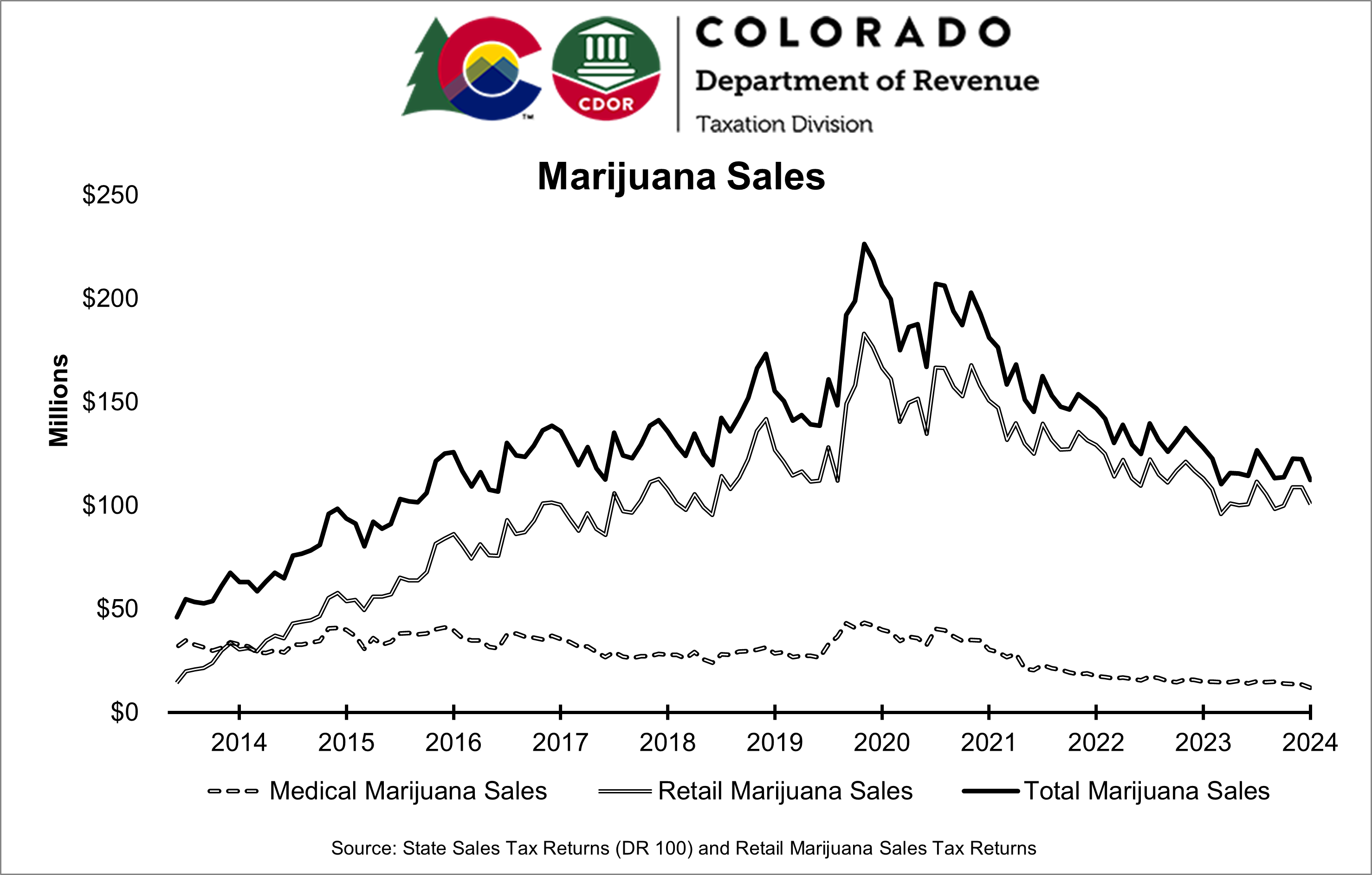 Legal marijuana sales in Colorado through 2024