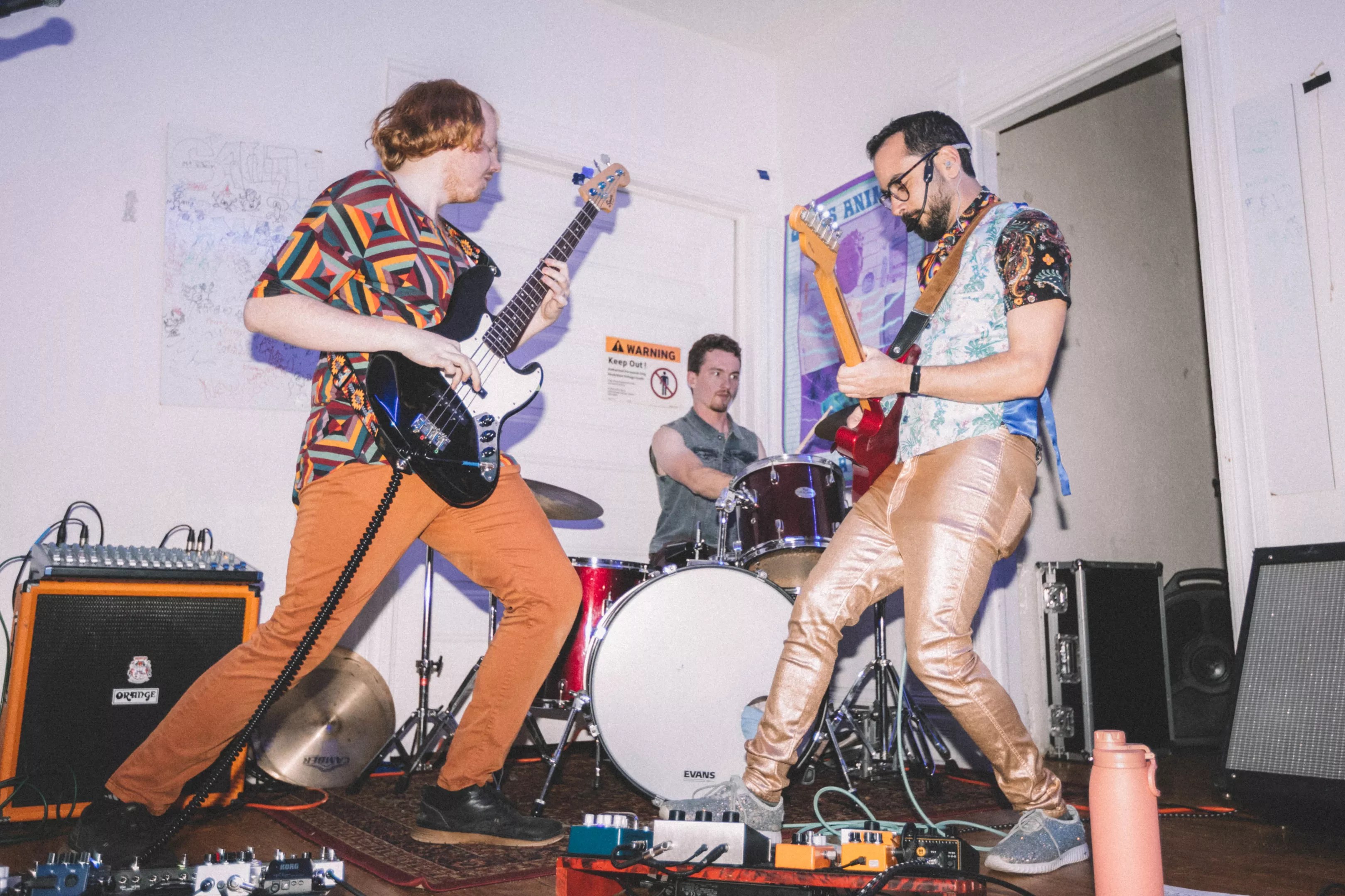 Sponsored Content began as more of a conceptual project after the pandemic, with Edelstein writing the songs and asking other members to play specific parts. “I think more recently, we really became a band. We had a fourth member that kind of fluctuated between a couple of different people, and it was more of a band where I was writing music, and we were all performing it together, but it was still kind of just me writing the music and telling people what the parts are,” he explains. “And now I really feel like ever since we became a trio and decided to forgo trying to find a fourth member, we really became more of a band where we’re all bringing our own voices. I think we all really understand what the music’s about.”