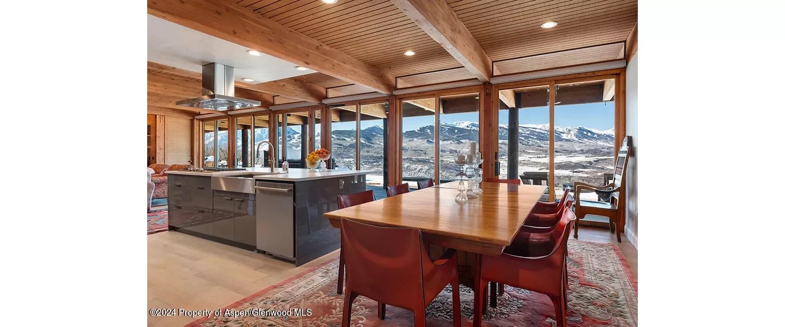 The property has sweeping views of the Aspen Valley and the surrounding mountains, as well as five bedrooms, five bathrooms, a hot tub and multiple outdoor entertainment spaces. According to Christie’s International Real Estate, there’s an option to expand the building to nearly 10,000 square feet; the studio has already been largely absorbed into the guesthouse.