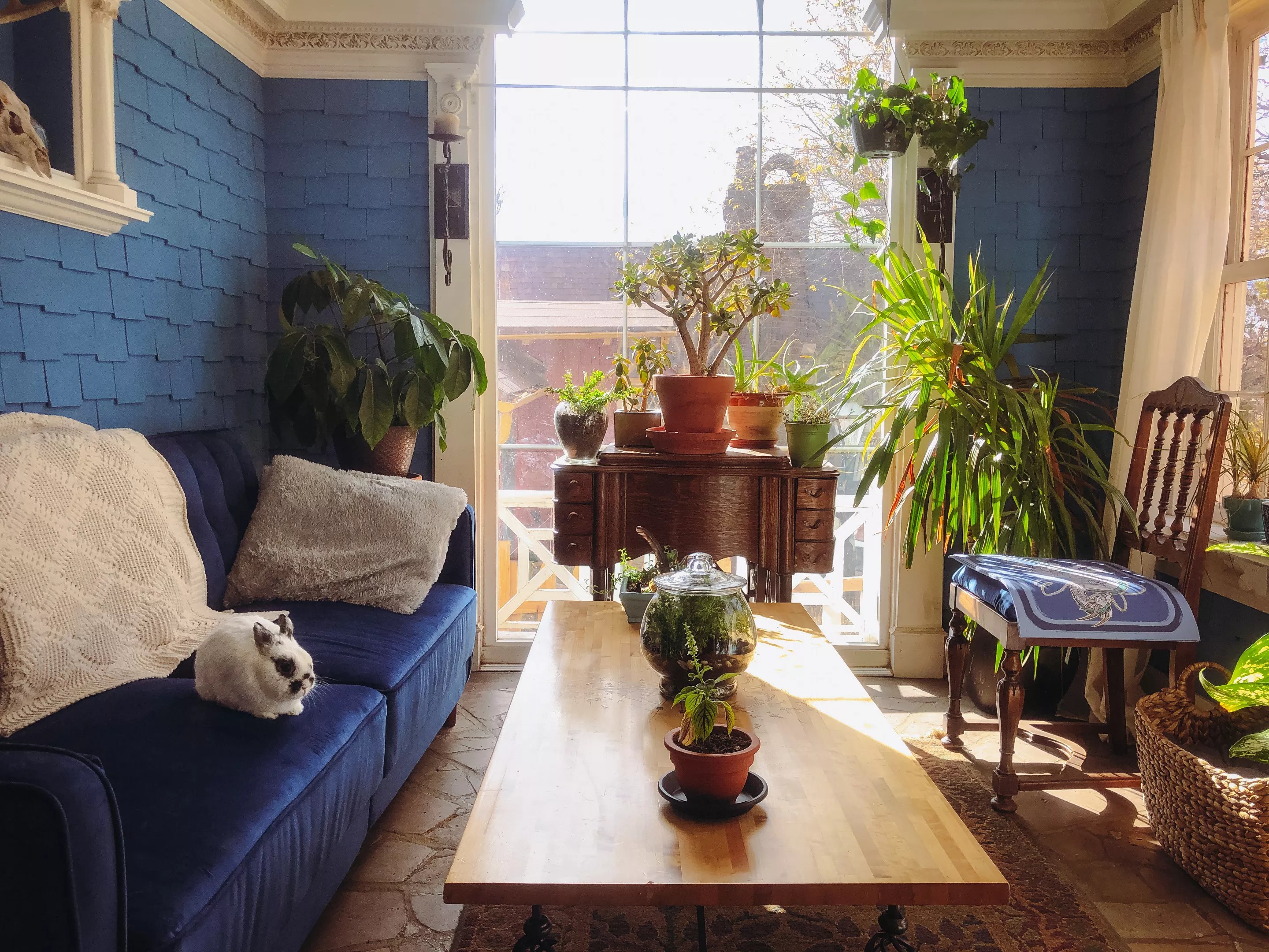 The renovated solarium with the rabbit named Chicken and the stone floor that Robert Failing claimed to be from Mount Vesuvius.