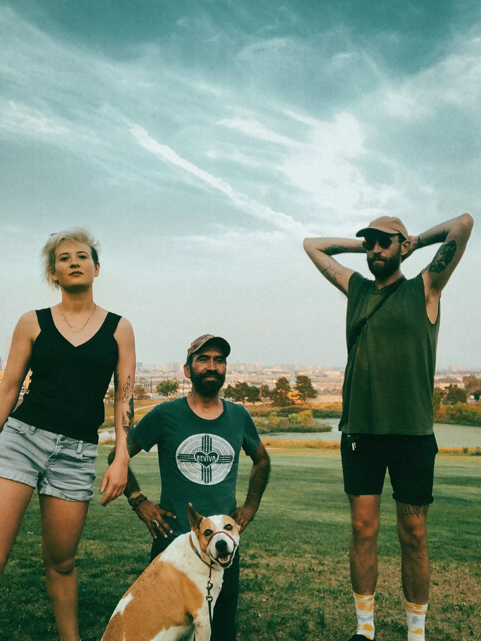 Melanie Steinway, Art Heffron and Andrew Bair along with Steinway’s dog, Django, at Barnum Park near their house.