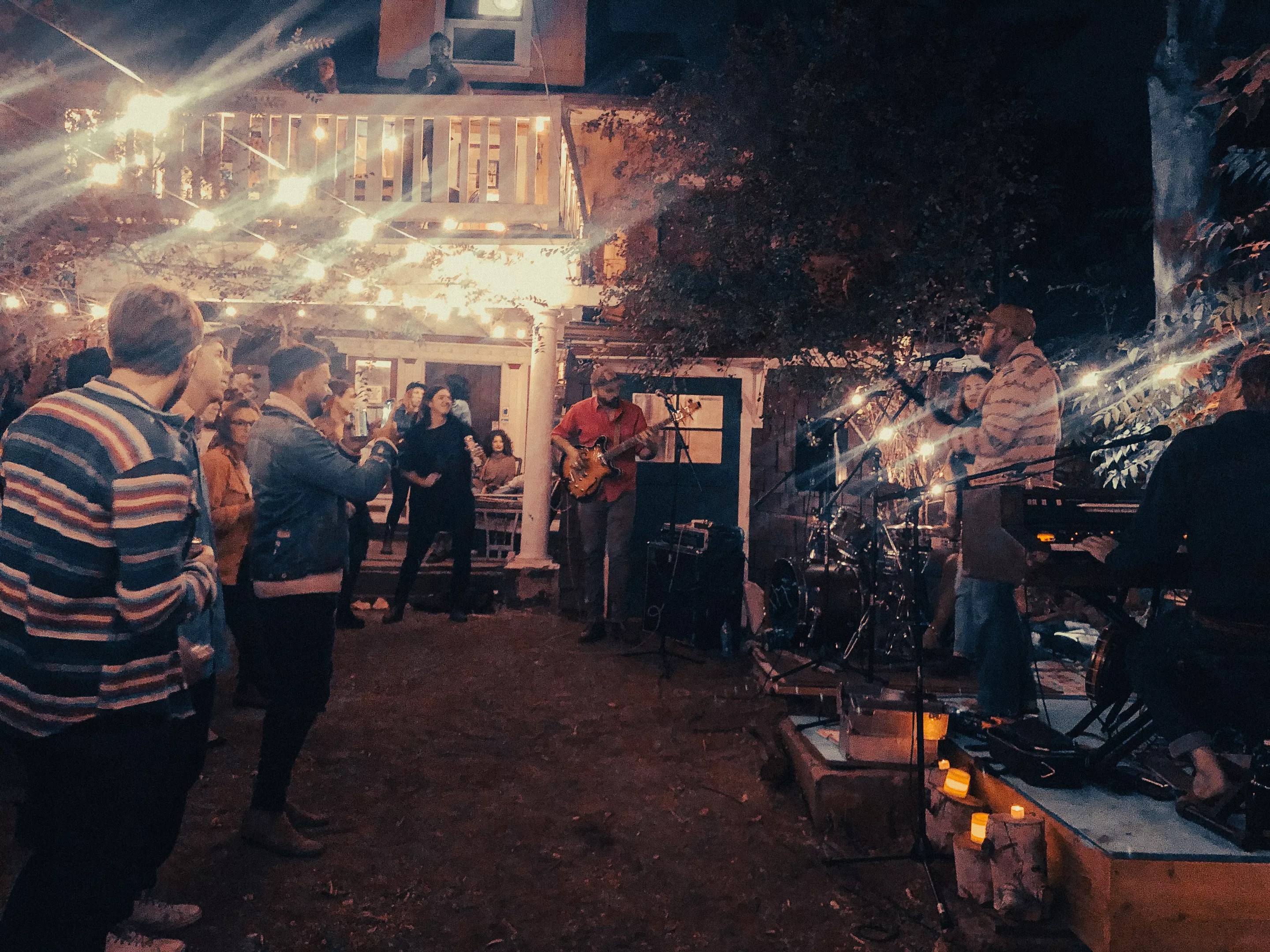 Steinway started hosting house shows as a college student at the Rhode Island School of Design. During her senior year, she and her two roommates shared a three-bedroom apartment in an old colonial house with an open layout that was well suited for intimate folk shows. She continued the tradition when she moved to West Washington Park in 2016. The house there had a large backyard and a hands-off landlord, and Steinway hired a fellow musician named Sawmill Joe to build a wooden stage in exchange for dinner and a bottle of mezcal. Her house show series gained a reputation as a fun place for intimate performances, and she and her housemates hosted two to three every summer.