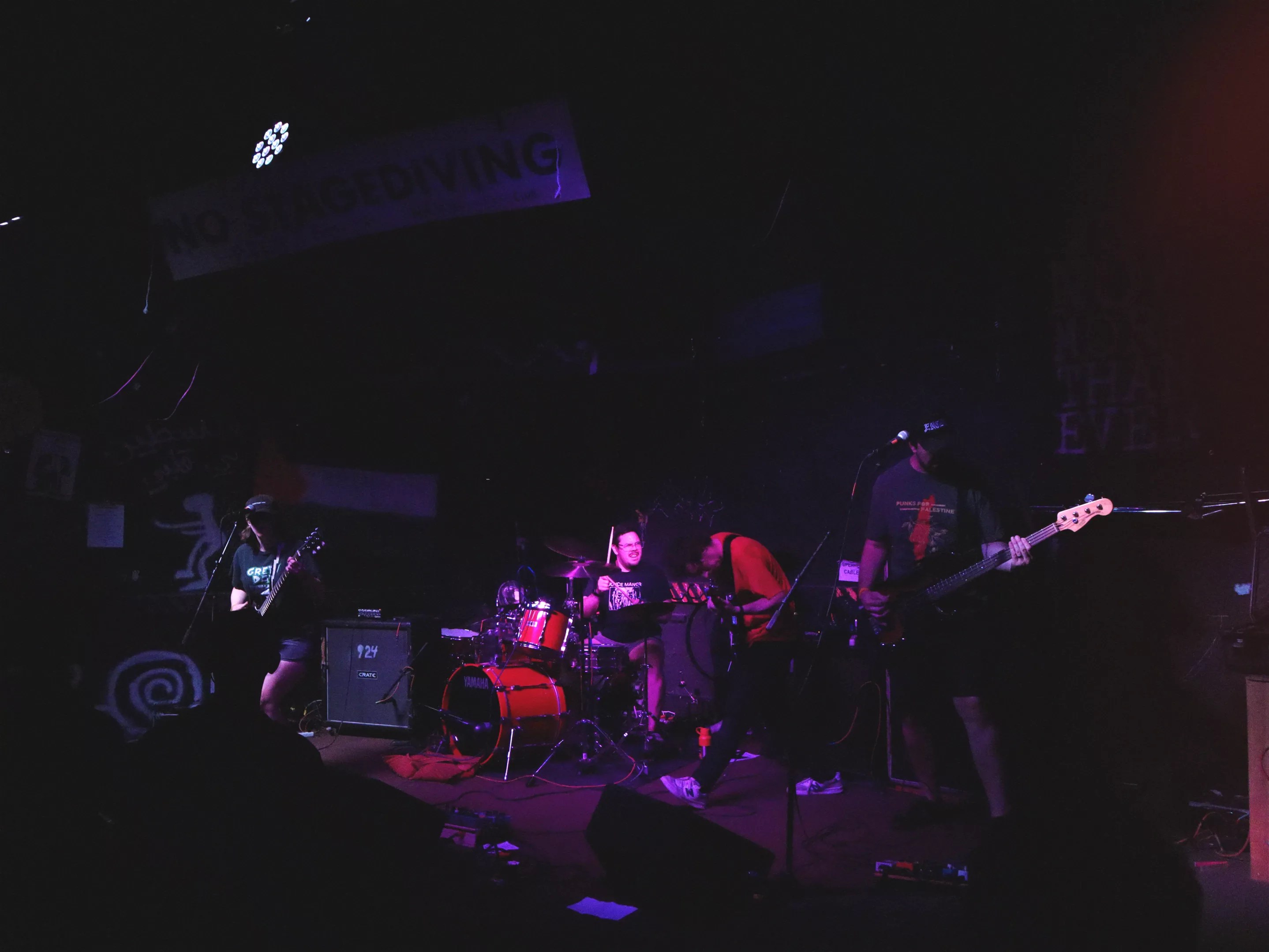 Broken Record plays at 924 Gilman in Berkeley, California. (From left to right, members Lauren Beecher, Nicholas Danes, Larson Ross and Corey Fruin.)