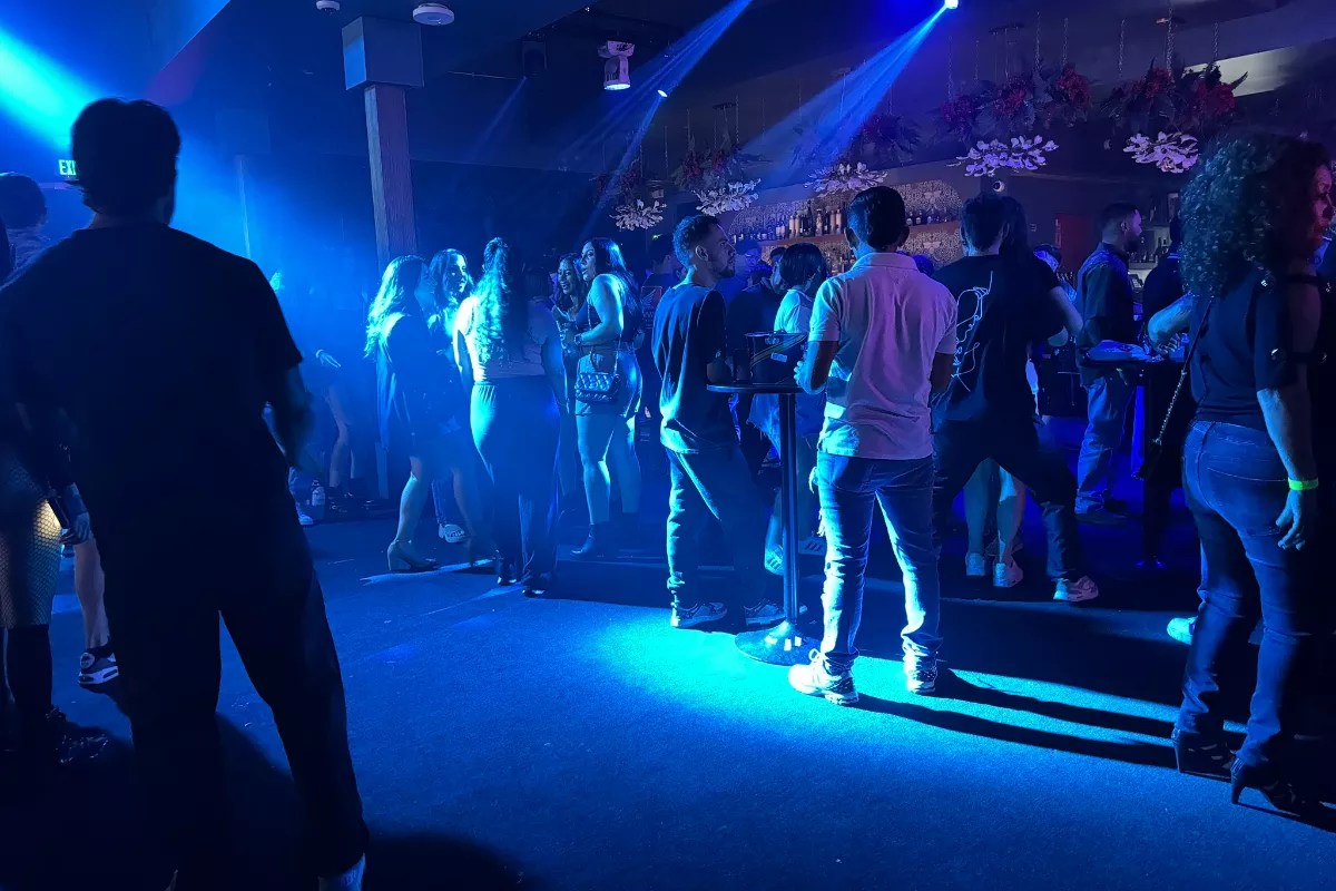 The club has a stage, disco balls, a DJ booth, two bars — including one on a VIP platform — a small patio and a spacious, polished wooden floor great for dancing. At the same time, it has tables and chairs set up on the floor, so it’s not always used as a dedicated dance floor. Still, dancers should have room to enjoy themselves, and on more crowded nights, the club moves chairs out of the way to create more room.