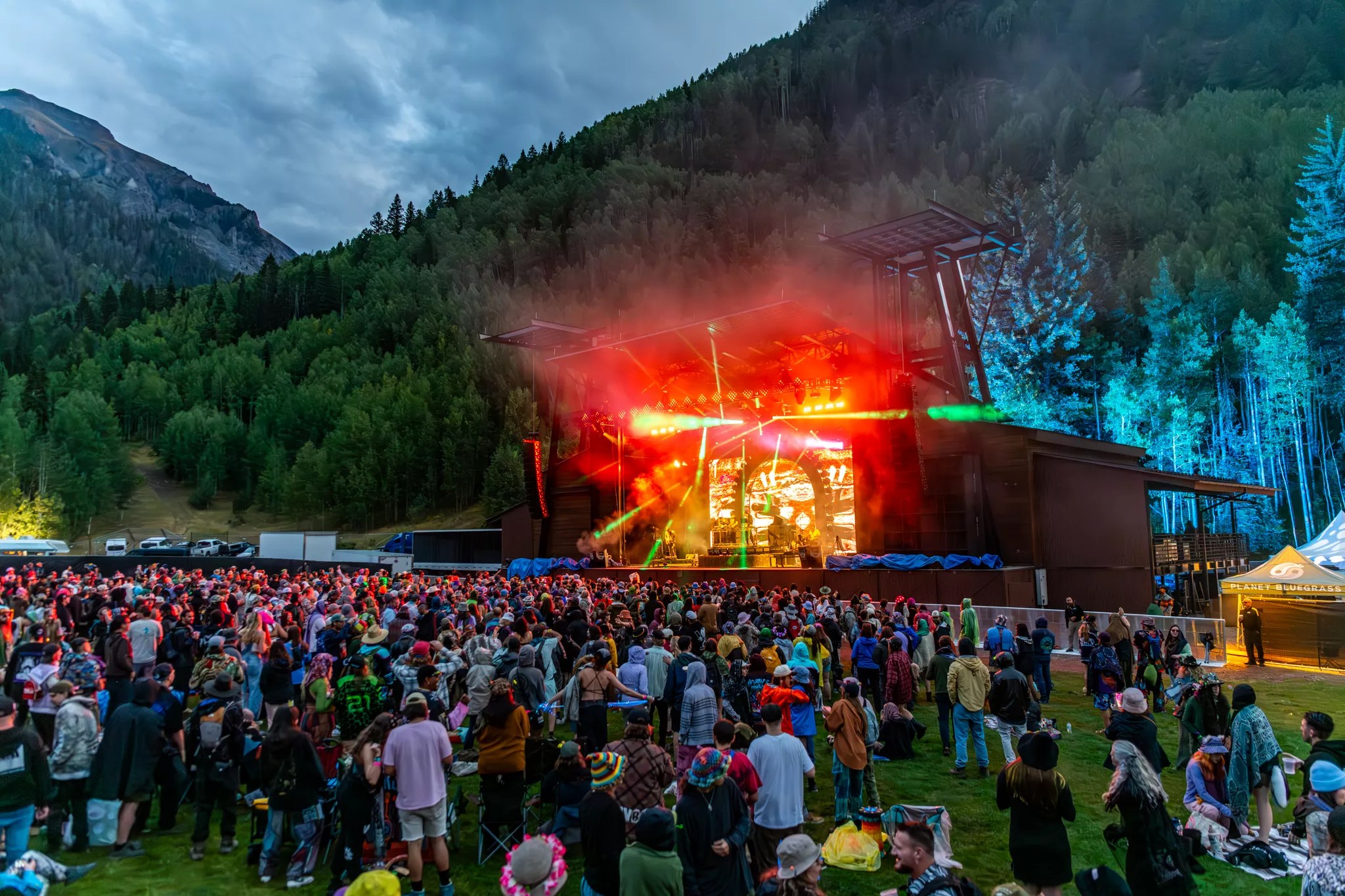 Telluride is a magnet for world-class live music, but the town hasn’t felt electronic energy this strong since Pretty Lights lit up the Town Park back in 2015 and 2016. That all changed the weekend of August 22, with the debut of Of The Trees’ festival, Camp Alderwild, produced by the partnership between Planet Bluegrass and AEG. The festival turned the box-canyon paradise into a glowing playground of heavy bass, lasers and mountain-camping magic. From the kickoff parties on Thursday, August 21, to Sunday’s poolside wind-down, the four-day celebration stitched together music, nature and community in a way that felt uniquely Telluride. EPROM at Camp Alderwild in Telluride Andrew Rios