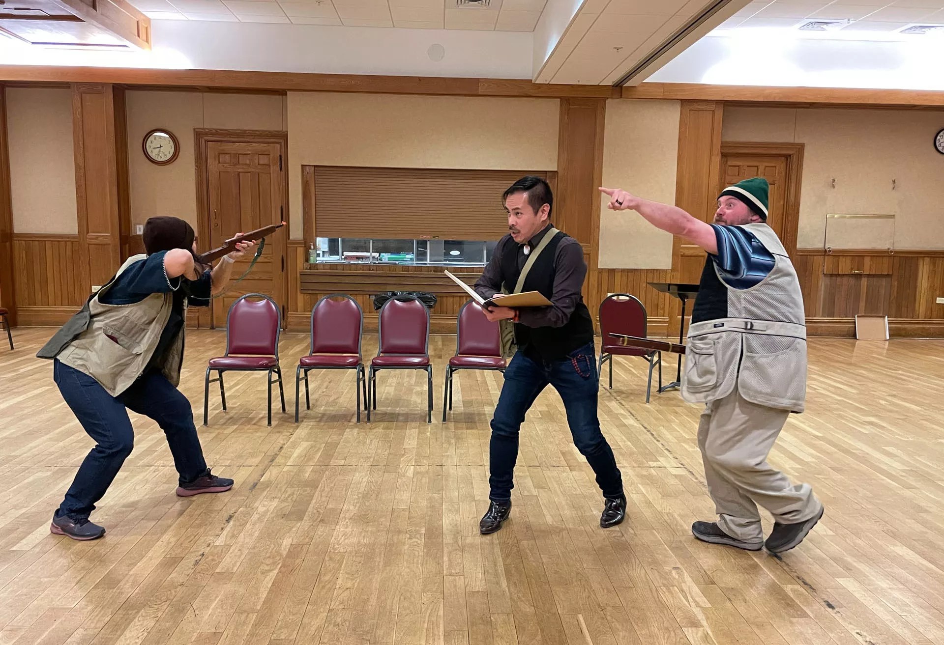 Opera on Tap performers stage a bird-hunting scene for the Bear Island segment of Atlas of Remote Islands.