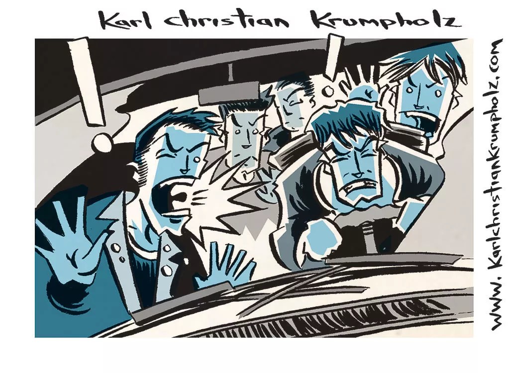 Brent Loveday: “We hired a novice driver named Tim. Unfortunately, he was educated far beyond his intelligence. Halfway through the tour, we had a show in Italy that would take us across the Alps. Tim was warned that his cheap off-brand GPS would suggest a dangerous route, but he ignored the advice. You can imagine my state of fear when I woke up to near-blizzard conditions atop a mountain pass. Our full-sized Mercedes van was meandering its way up the treacherous pass with a moron at the helm. We were approaching a ski resort, and skiers were frantically waving for us to turn around. Karl Christian Krumpholz