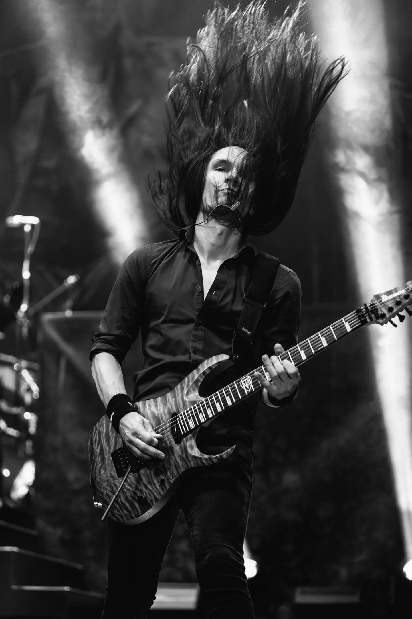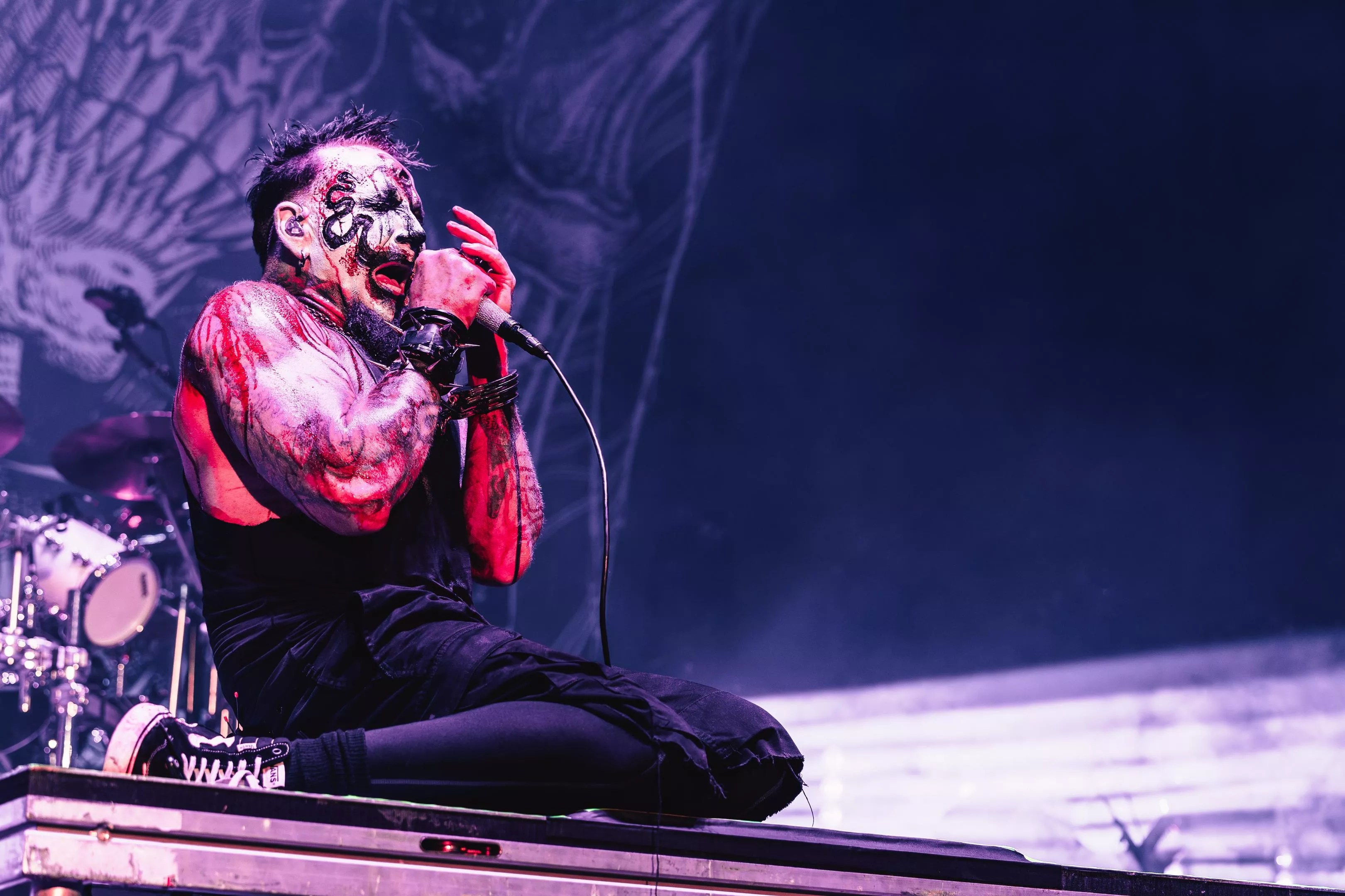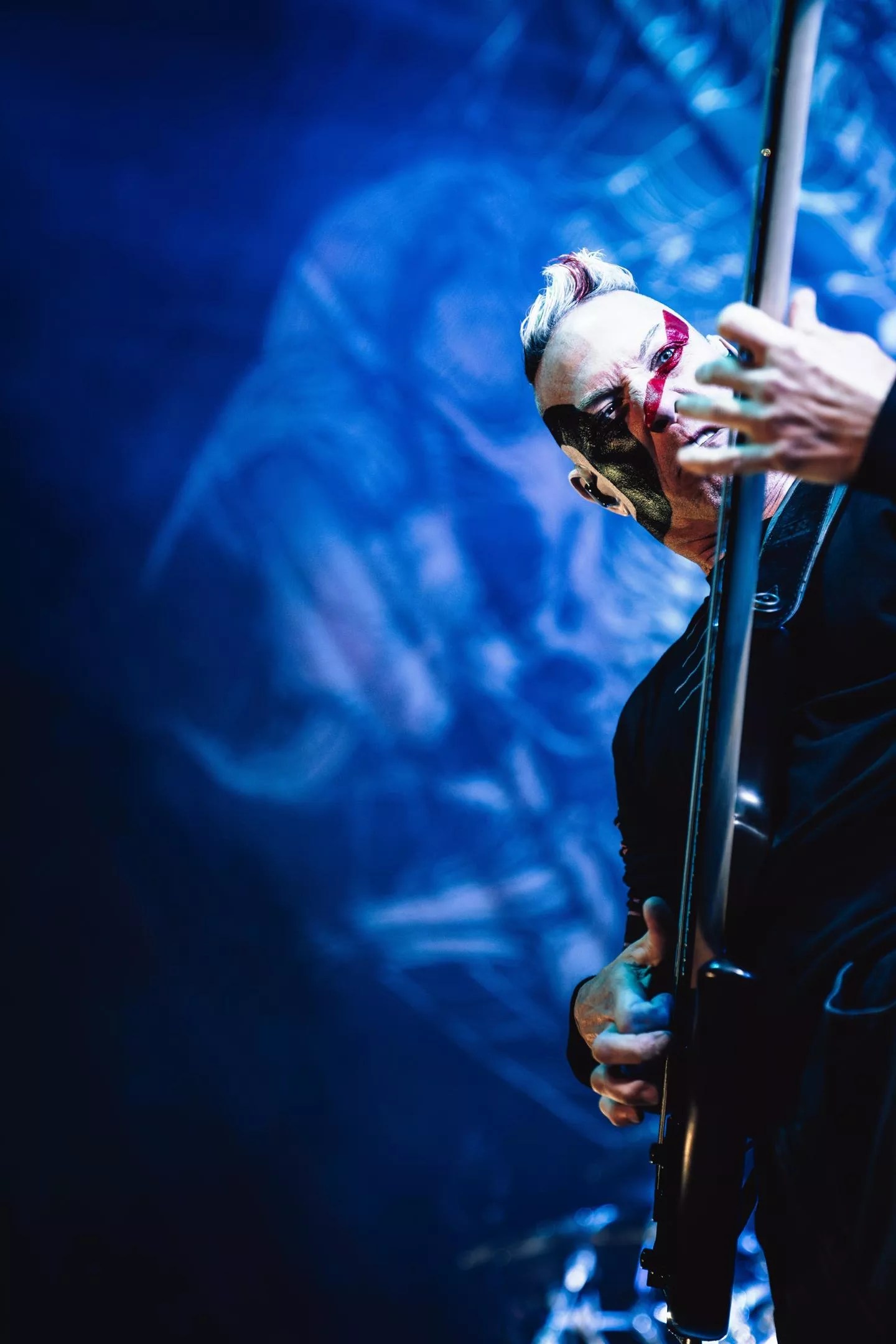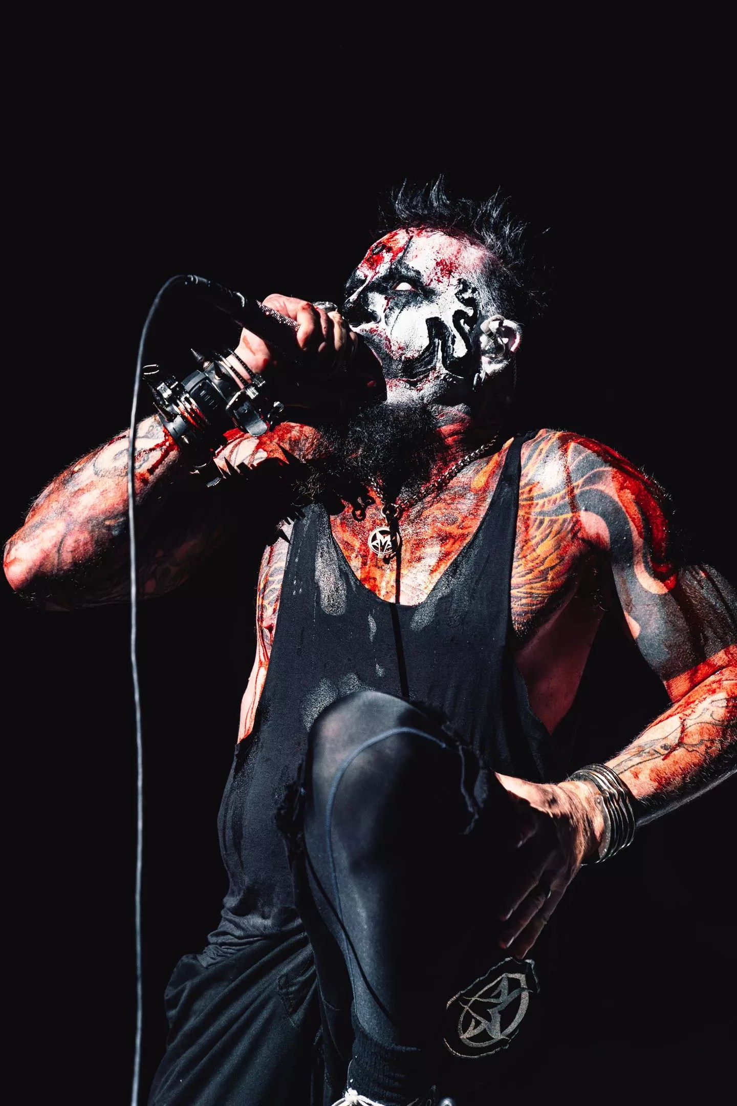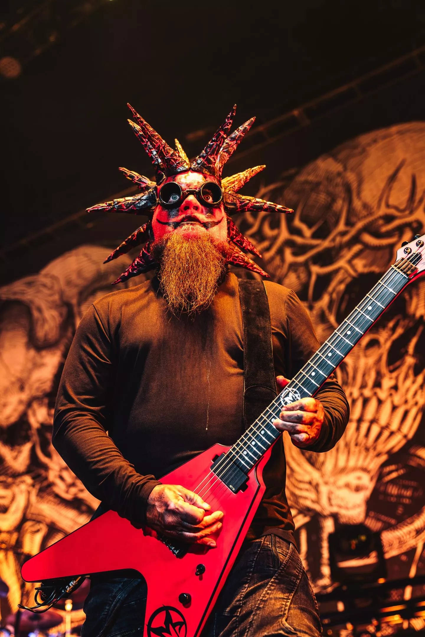 Mudvayne guitarist Greg Tribbett brought haunting energy to Ball Arena.