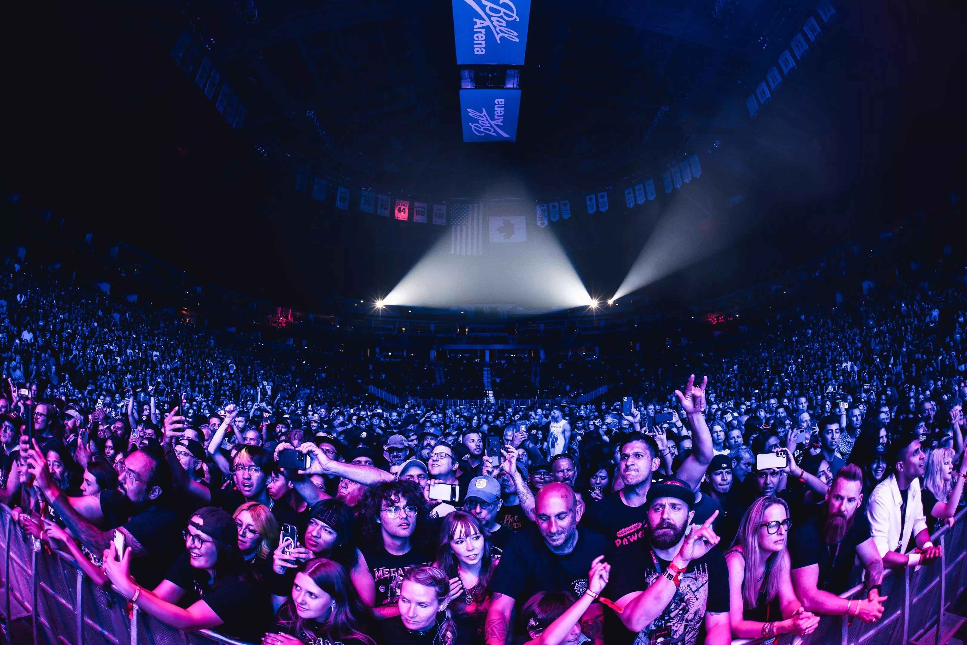 A huge crowd gathers for Megadeth at Ball Arena in Denver.