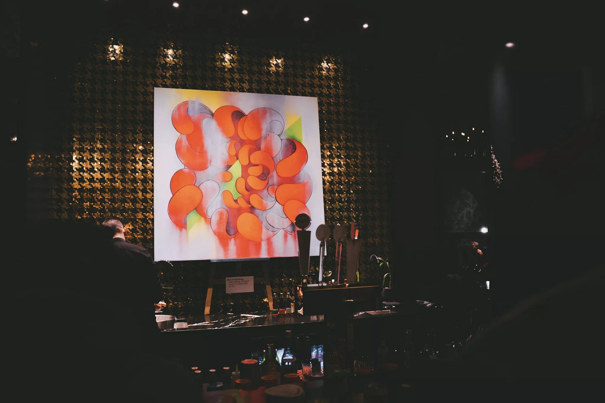 “Glue of Everything” hangs behind the bar at RUMTUM’s listening party in December.