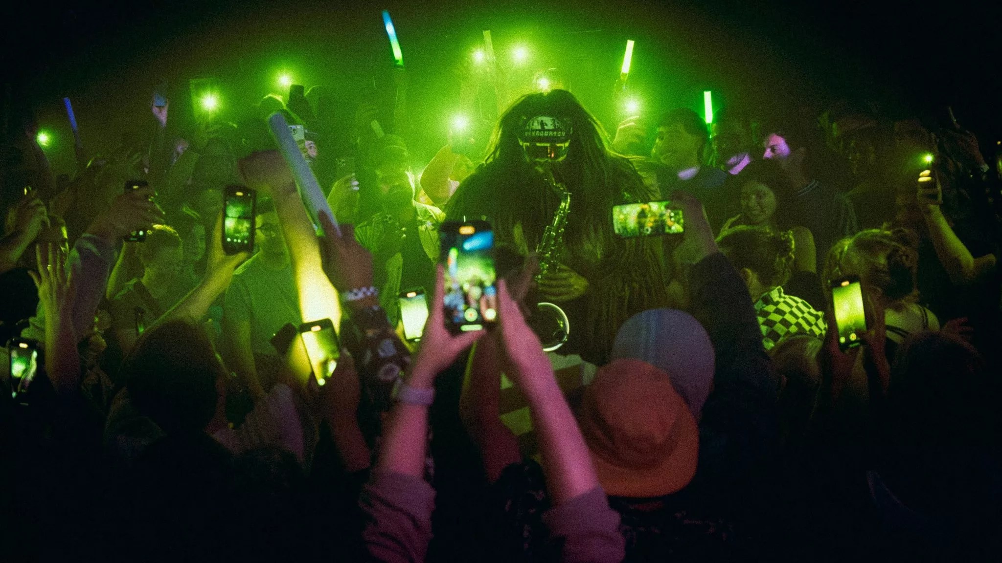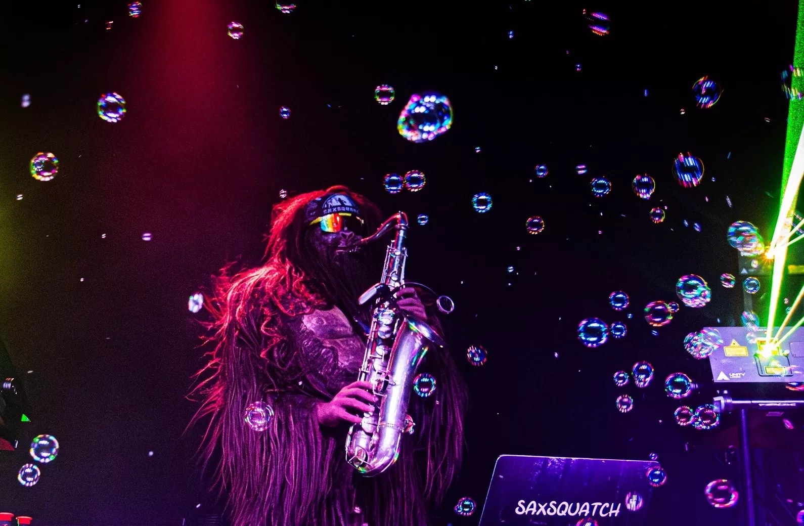 Being a public figure is more about uniting “people from all walks of life” through music than confirming the existence of an elusive cryptid species, according to Saxsquatch. “You have to come to the show to realize how beautiful it is to see people coming together and literally raging,” he adds. “It’s ravers. It’s Bigfoot believers. It’s people who don’t usually go to a show, but Saxsquatch is their only and favorite artist.”