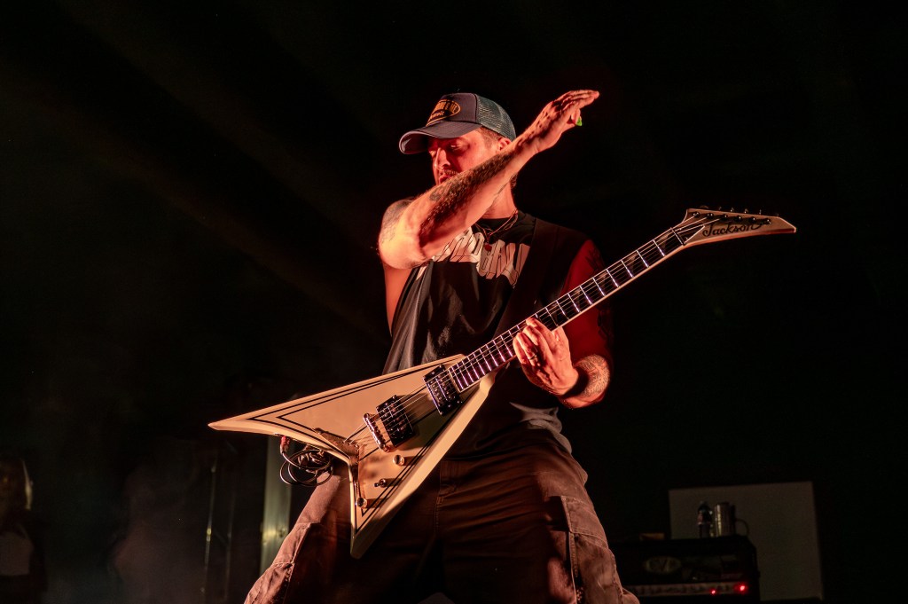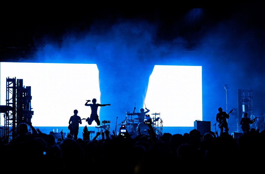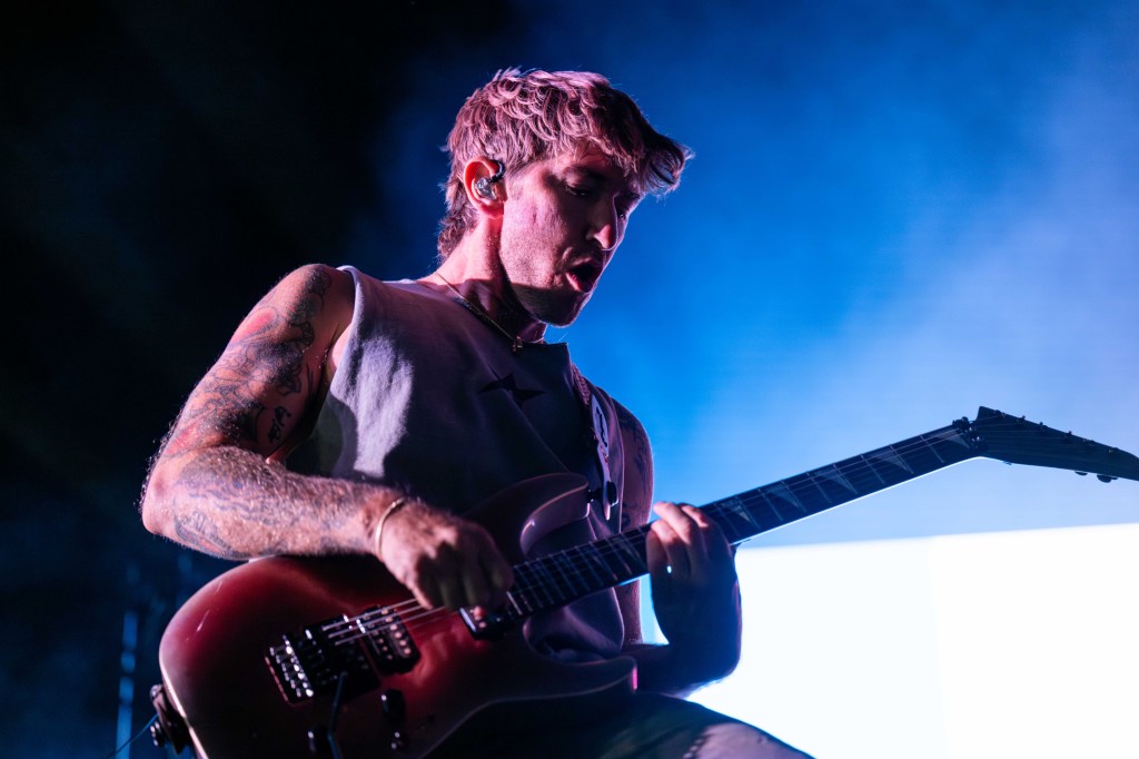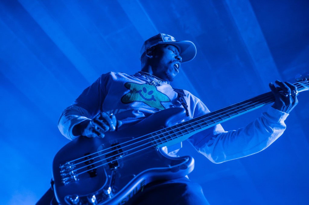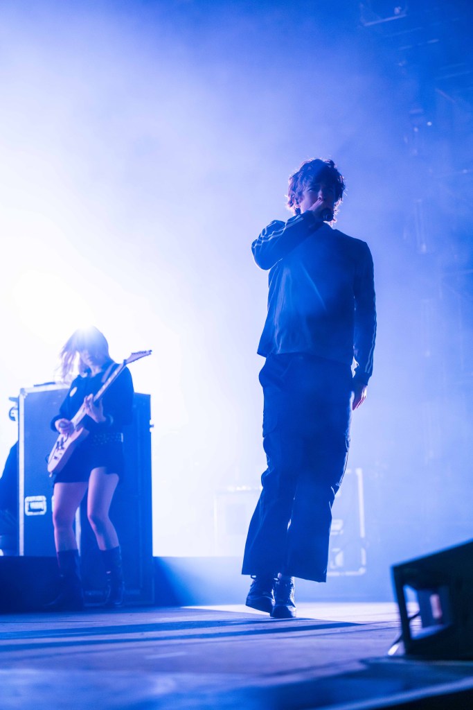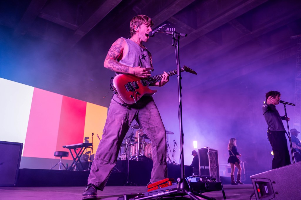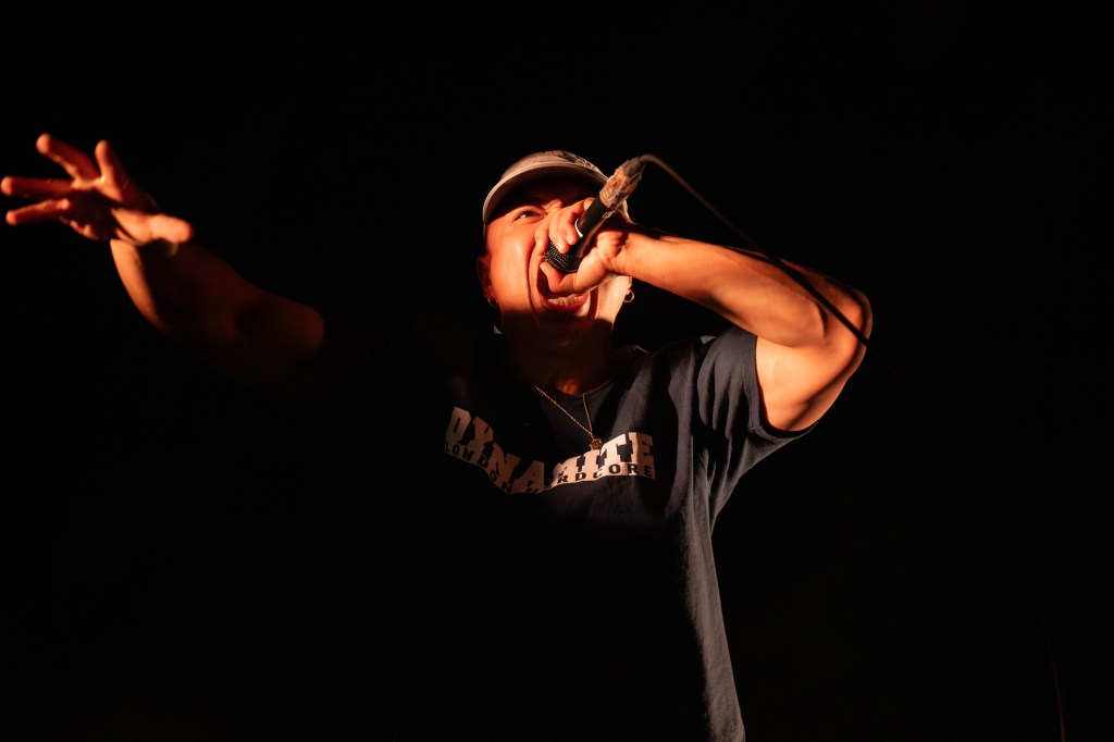 The band launched into “Loud Bark” as the audience roared. By the time Turnstile came on stage, many people in the crowd had shed their layers, sweating from three sets of rushing adrenaline. Turnstile was the highlight of the evening; the band has been making waves for its raucous, high-energy concerts (vocalist Brendan Yates is the first to stage dive at an NPR Tiny Desk show). The group delivered a powerful set of its polished hits, opening up with the title track off its latest album, Never Enough, before going into “T.L.C.”