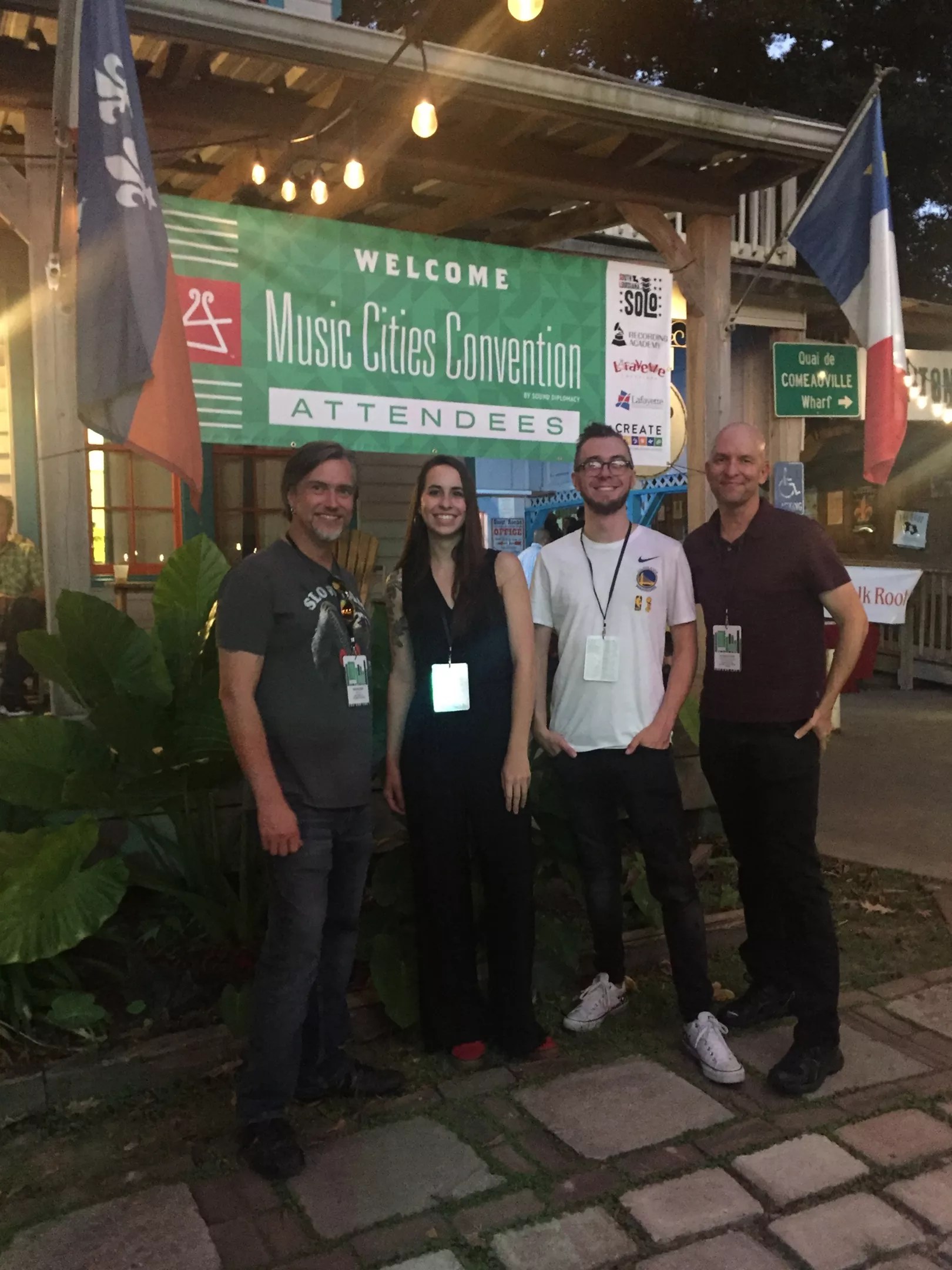 Storm Gloor (right) with students from his Music Cities class at the Music Cities Convention in Lafayette, Louisiana last year.