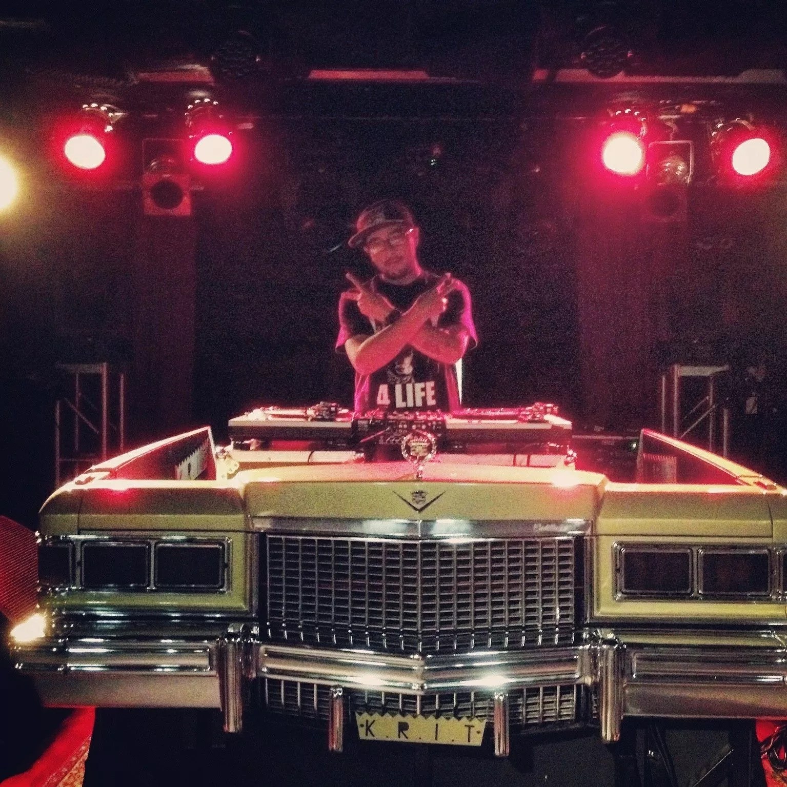 Joey Cicak Dominic Esparza with rapper Big K.R.I.T.’s Cadillac DJ booth. photo provided by Dominic Esparza.