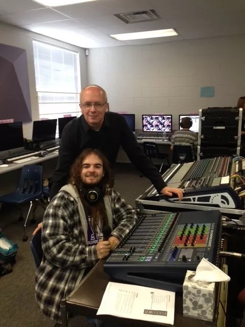 Samuel Glover Ron Gordon teaching one of his Jefferson County students about audio engineering. photo provided by Ron Gordon.