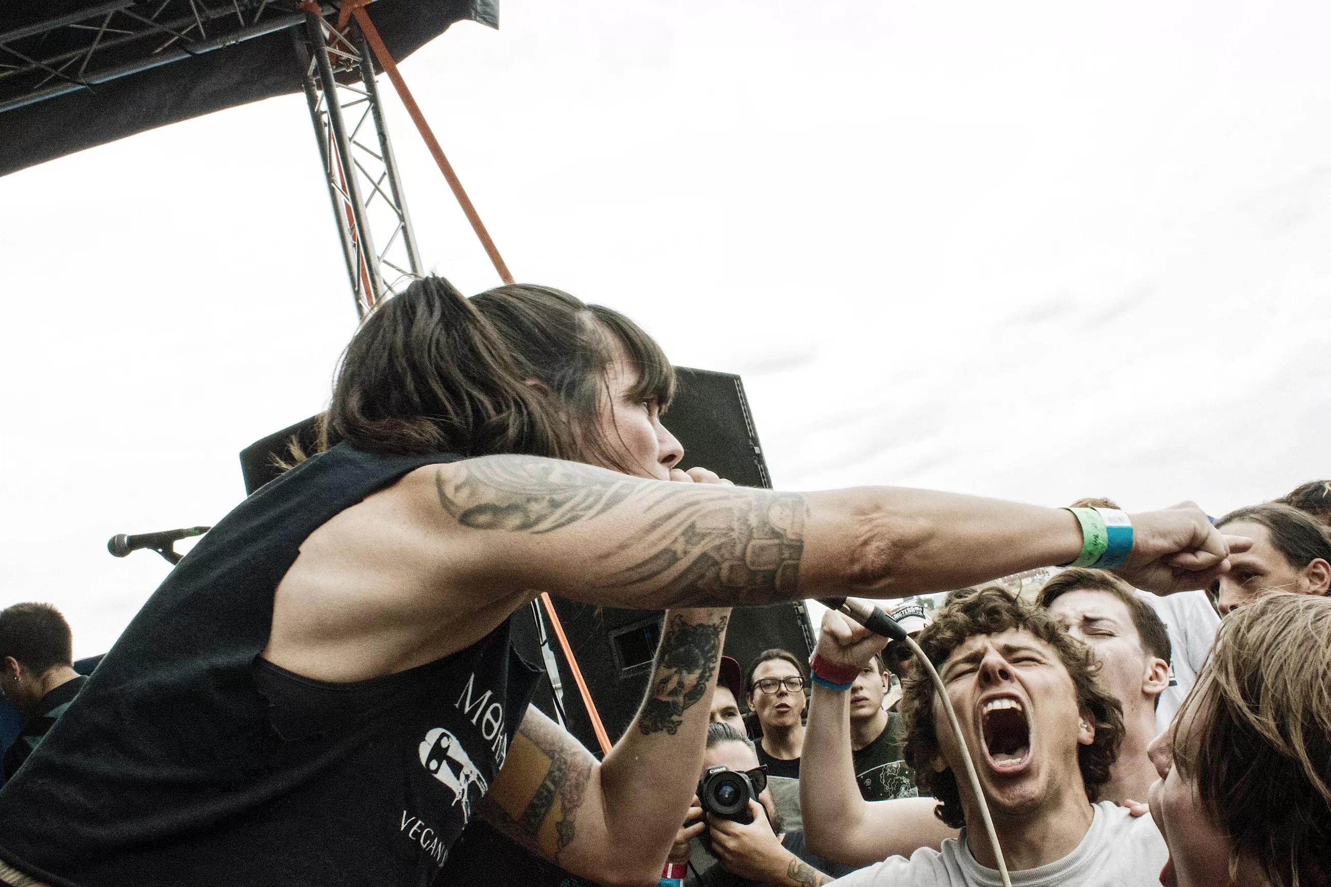 “I get asked a lot about the negativity of a lot of the lyrics,” she says. “The negativity is a very authentic feeling, and I think people can really connect to that. I am not a fan of the whole positive mental attitude and the really positive youth-crew we’re-all-in-this-together lyrics. I think part of that is being a woman, and being a woman in the hardcore scene; I don’t feel like I’m part of that. I try to write things that are more negative while doing things in real life that are more positive. I think of [the music] as a relief of how I’m feeling. That’s kind of where the lyrics came from – the state of the world and the state of my mind. They’re very connected.”