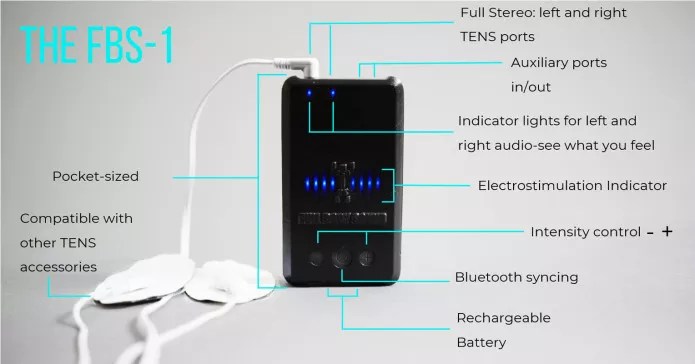 The two began developing what would become Full Body Sound through the SolderWorks company in Westminster. The gadget connects to an audio source using Bluetooth or an auxiliary cord; a pair of electrodes are then placed on a listener’s skin, and an electric current runs through them, stimulating the muscles and nerves and allowing the listener to feel the audio coming through.
