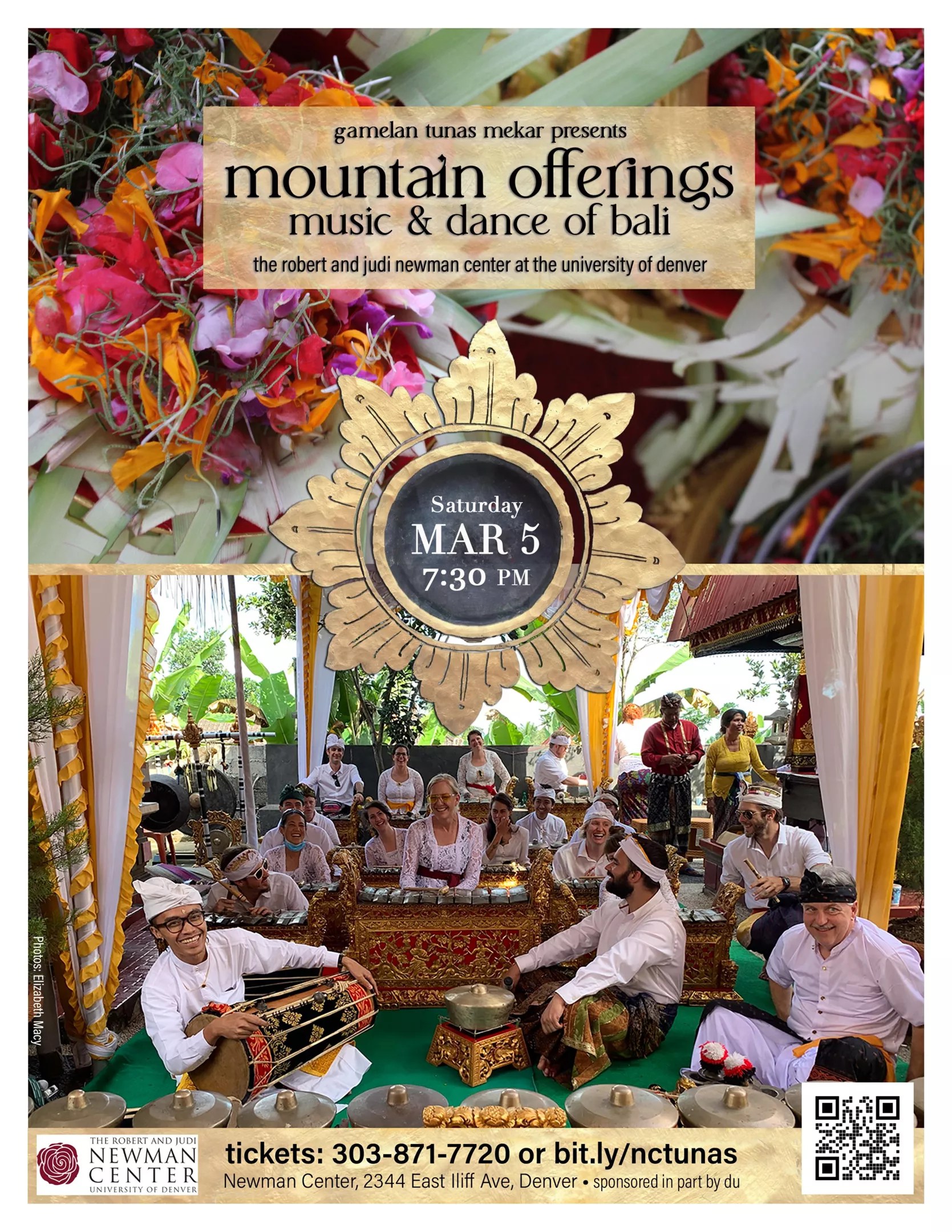 Gamelan Tunas Mekar presents Mountain Offerings, Saturday, March 5, 7:30 p.m., at the June Swaner Gates Concert Hall, 2344 East Iliff Avenue. Tickets start at $19. For more information, visit newmancenterpresents.com.