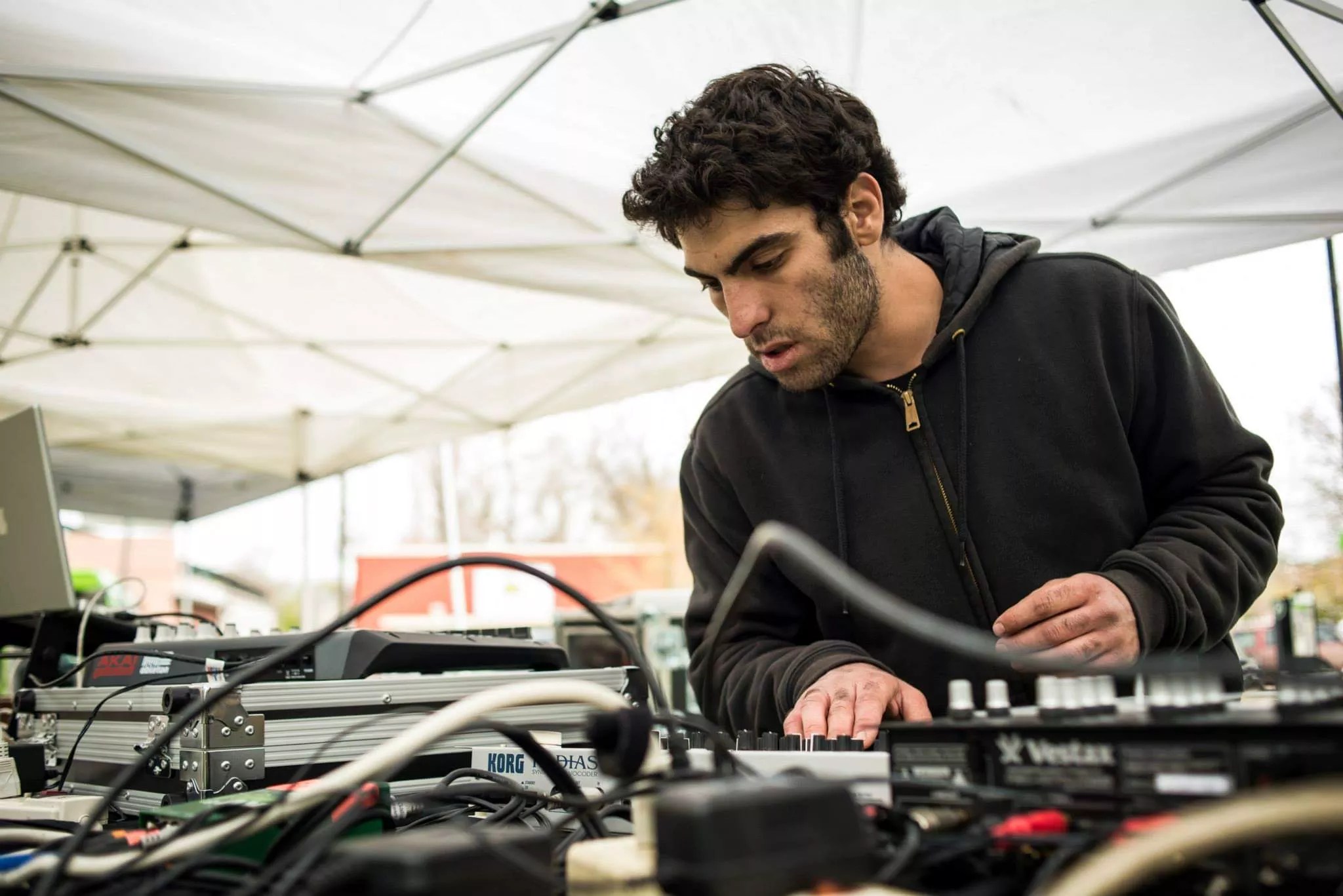 I remember seeing Atom â„¢ and Tobias Freund play a six- to seven-hour set in the Boulder Canyon for this Lunar Lodge party, and it changed my life. I just found it so much more interesting than playing other people’s records. Not to say anything bad about deejaying, because I constantly listen to mixes, and I still look up to a lot of DJs, but I like the idea of making it a completely original experience. I also love the challenge of using hardware because it helps me in the studio a lot, and I just find it more rewarding. The hard part is trying to keep it diverse and flowing well enough to where the crowd doesn’t get bored, but a lot of people become very interested when they see I’m not using CDJs or a laptop.