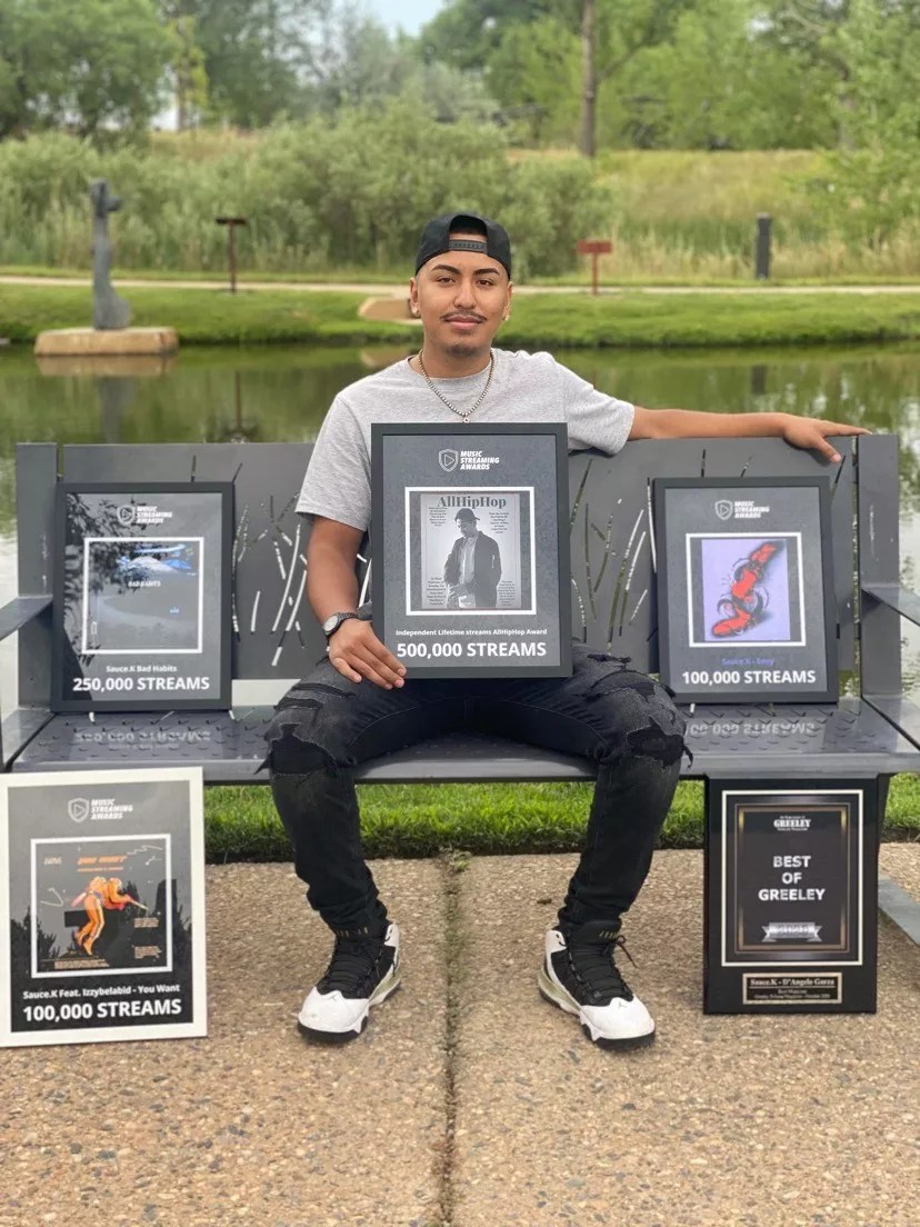 Once he had been showcased in the likes of The Hype magazine and XXL, radio stations, blogs and magazines in Colorado began to take notice. In 2020, Garza became the first hip-hop artist to win the Greeley Tribune‘s Best Musician of Greeley award, and took the title again in 2021. He won 105.5 FM’s Listeners’ Choice Award, and was named one of the top eight musicians under 22 in 2021 by Sonic Spotlight, a northern Colorado music showcase and competition. Earlier this year, he was the youngest person on NoCo Style magazine’s 30 Under 30 list. Plus, he’s been awarded multiple plaques by the Music Streaming Awards: one when his first EP, Bad Habits, hit 250,000 streams; one each for “Envy” and “No Options,” two singles that have had more than 100,000 streams; and, most recently, a plaque for 500,000 lifetime streams.