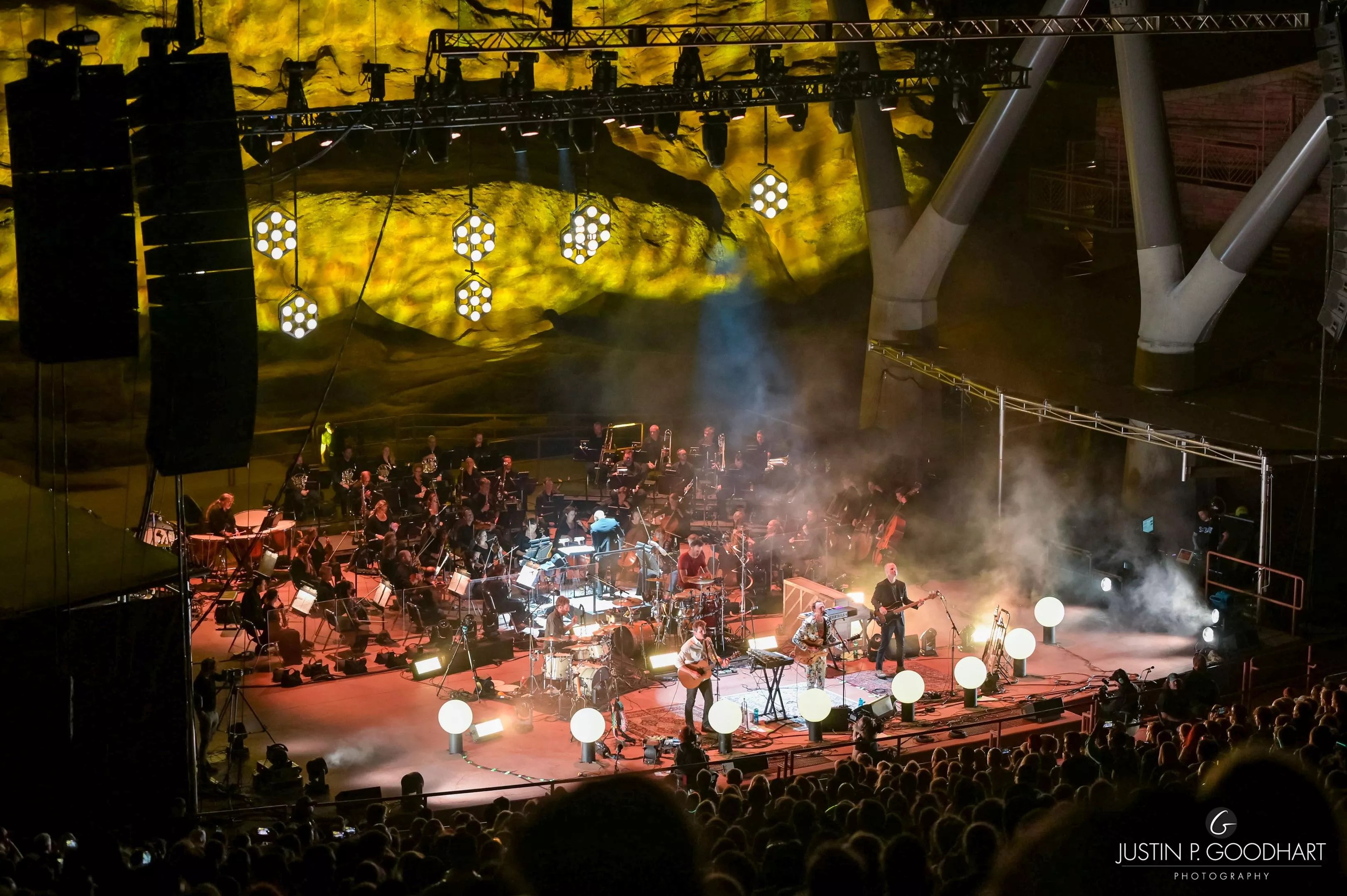 Tony Pierce, chief artistic officer for the Colorado Symphony Orchestra, was enthusiastic from the beginning. “I’d been a fan of Guster since college,” he says, “and we’re always looking for new collaborators, looking for ways to bring in new audiences.” This show will be CSO’s third experience with Guster, having performed at Boettcher Hall in 2012 and Red Rocks in 2021. Every year, the CSO plays numerous Red Rocks shows with non-symphonic collaborators, and Guster’s “music lends itself to orchestration very well, and it’s a positive collaboration,” Pierce notes. “It’s like family, and we’re excited to see them.” With nearly eighty musicians on stage, “it’s a huge production with a lot of moving parts,” he adds, because orchestras need sheet music, and arrangers must translate a band’s songs to orchestration, such as “creating a string line for a tasteful counter-melody to complement what is already there.”