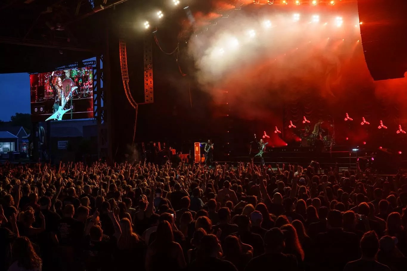 “This tour has been the quintessential test of all of our physical capabilities out here in this heat,” Hale says on a muggy day in St. Louis. “Of course, keep in mind it’s like 90 degrees outside, then you add pyro, and it makes it that much hotter.