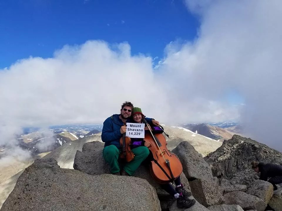 It was Adams who dreamed up their summertime challenge of climbing fourteeners with instruments and playing all 36 movements of Bach’s cello suites. So far, they’ve completed six of them.