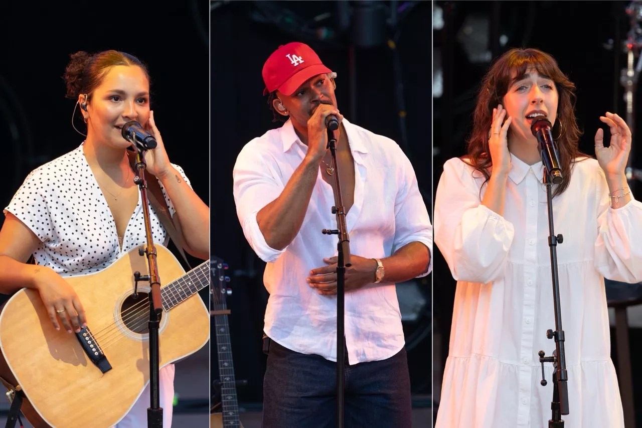 Prior to taking the stage, the folk-pop trio, Tiny Habits, opened for Taylor with a thirty-minute set of mostly original music and one cover of Fleetwood Mac’s “Landslide.” The group of three friends, Cinya Khan, Maya Rae and Judah Mayowa, released its first EP in April 2023, and have since recorded songs with Lizzy McAlpine and Kacey Musgraves, and is opening for Taylor on his summer tour.