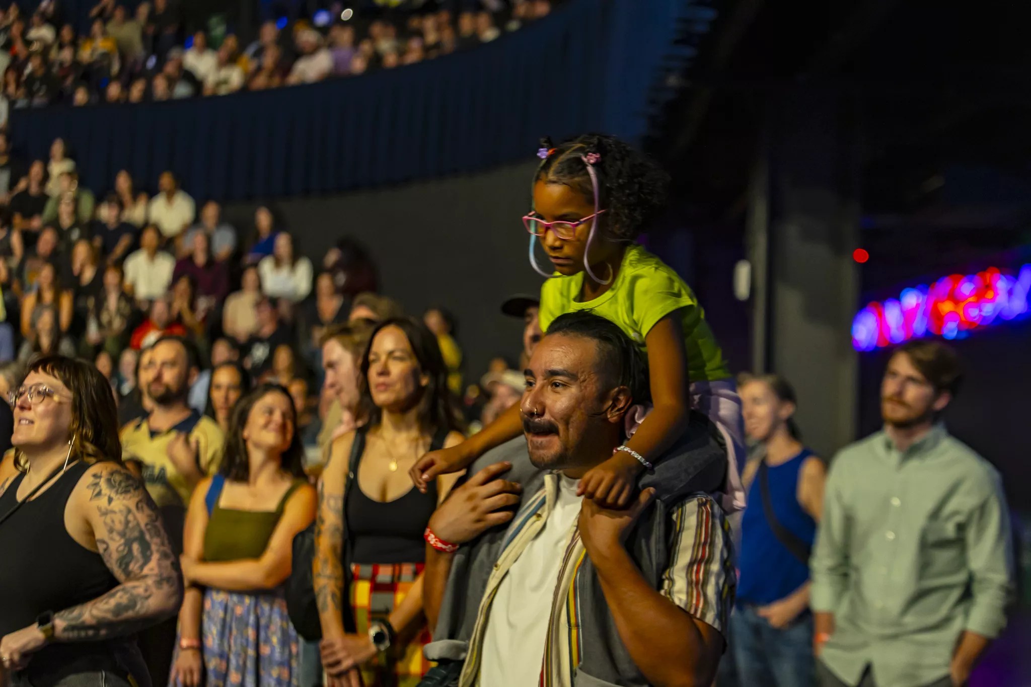 A fan gets a better view thanks to her dad.