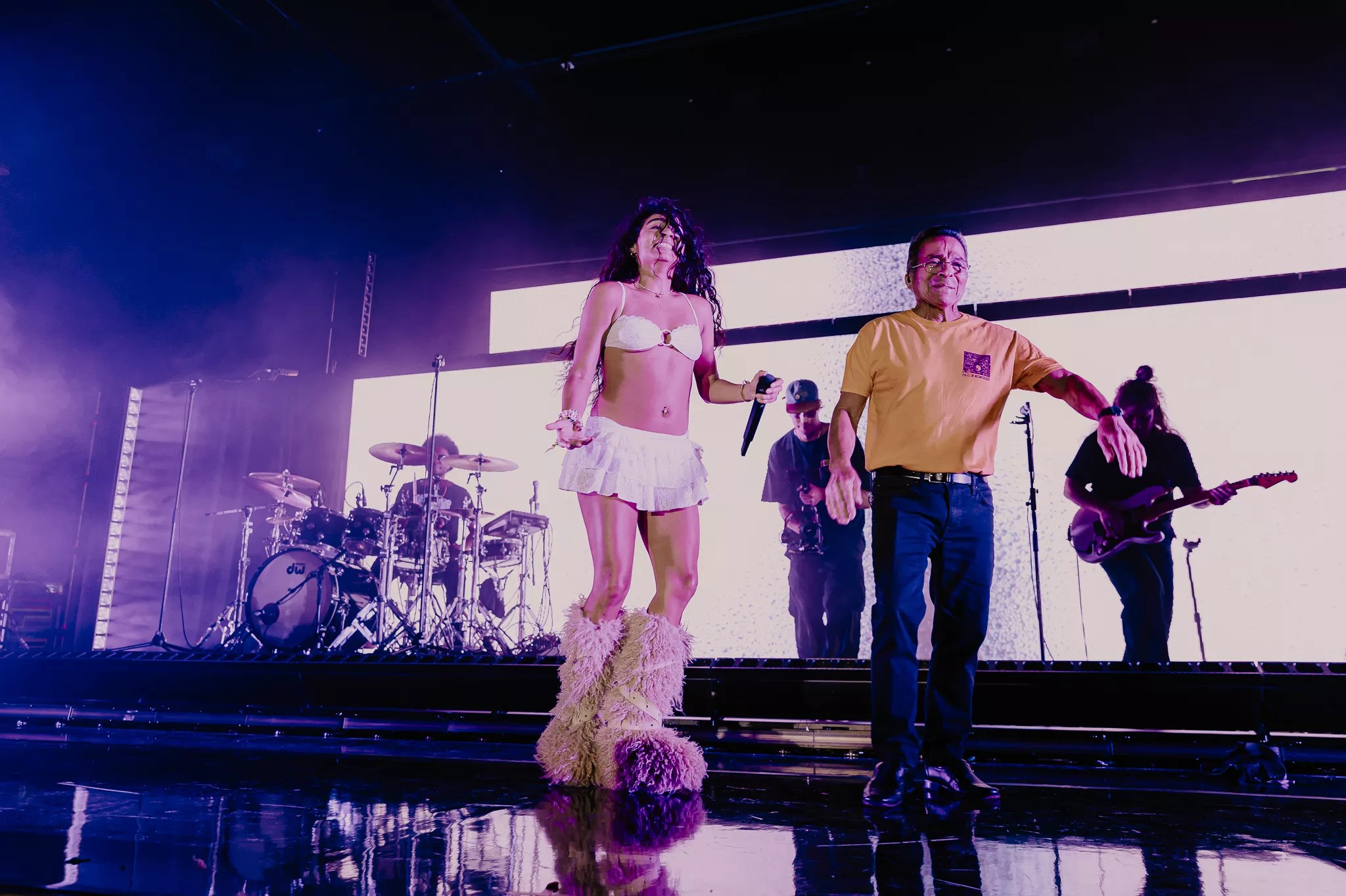 Reyez on stage with her father.