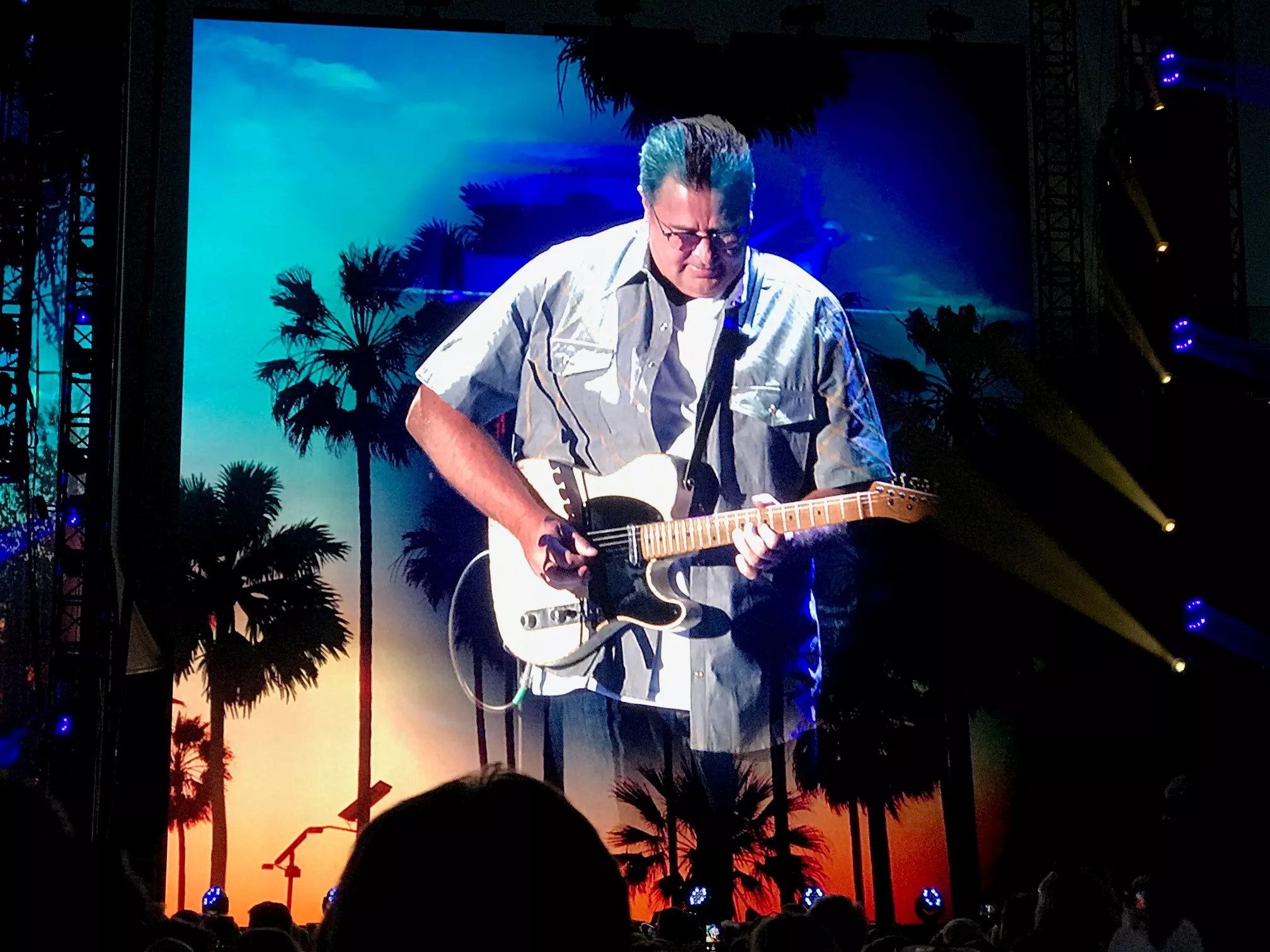 Unlike Buffett, the members of the Eagles refused to lean on a nostalgia shtick, even as they played bygone numbers. There isn’t a nip of irony in their performance. They aren’t fronting like they’re still youth. And they’re not promising anybody an ocean-cruise experience. They do what they do, and do it well.