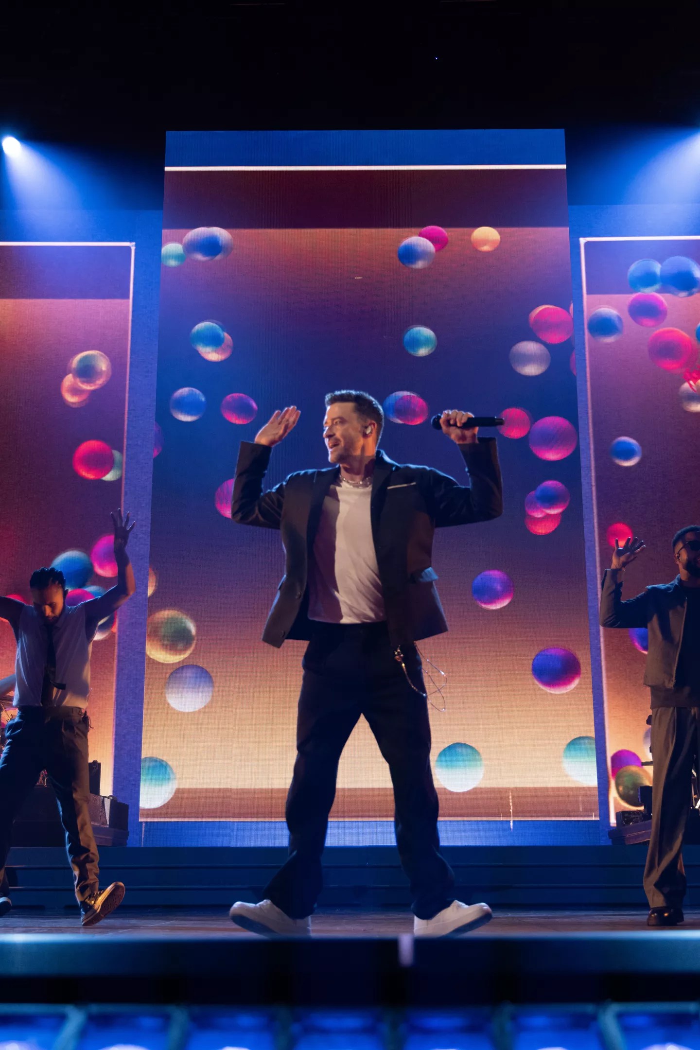 Even though Timberlake expressed fears that his DWI in the Hamptons this summer would “ruin the tour,” he recently snagged a plea deal, and the world tour is only getting bigger. Photos from the tour show massive production efforts, with the former NSYNC member on top of a giant cube, strumming the guitar for some acoustic songs and, of course, dancing.