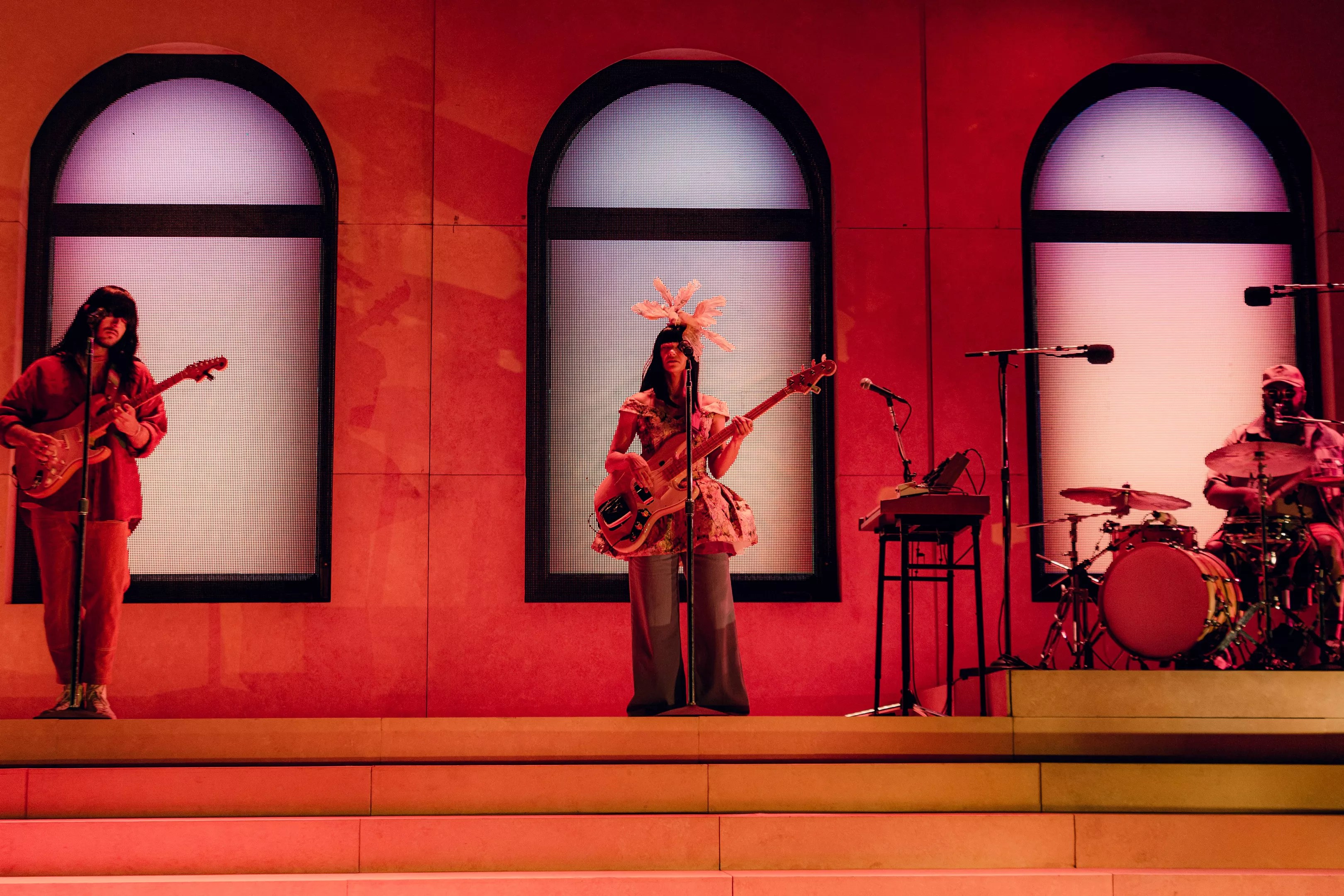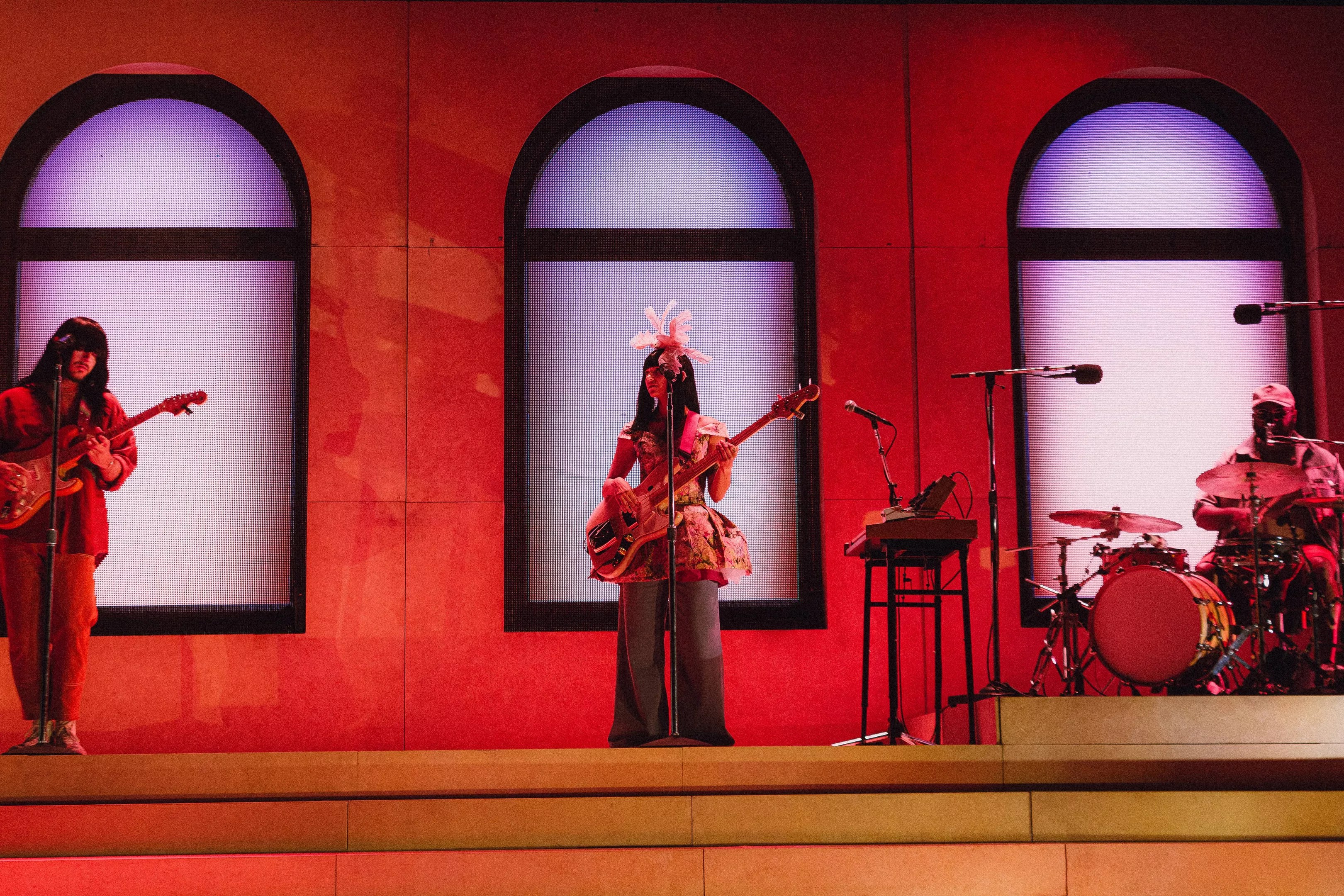 The stage was set with a backdrop of three arched windows above a platform with multiple stairs leading down to the rest of the stage, and was flooded by meticulously chosen colors that perfectly reflected the sound — sherbets, rainbows, deep blues and lavender. Many people have asked what it’s like to have synesthesia; going to a Khruangbin show would give you a good idea. The colorful lights that paired with the music were precisely what I experience when streaming the band’s music.