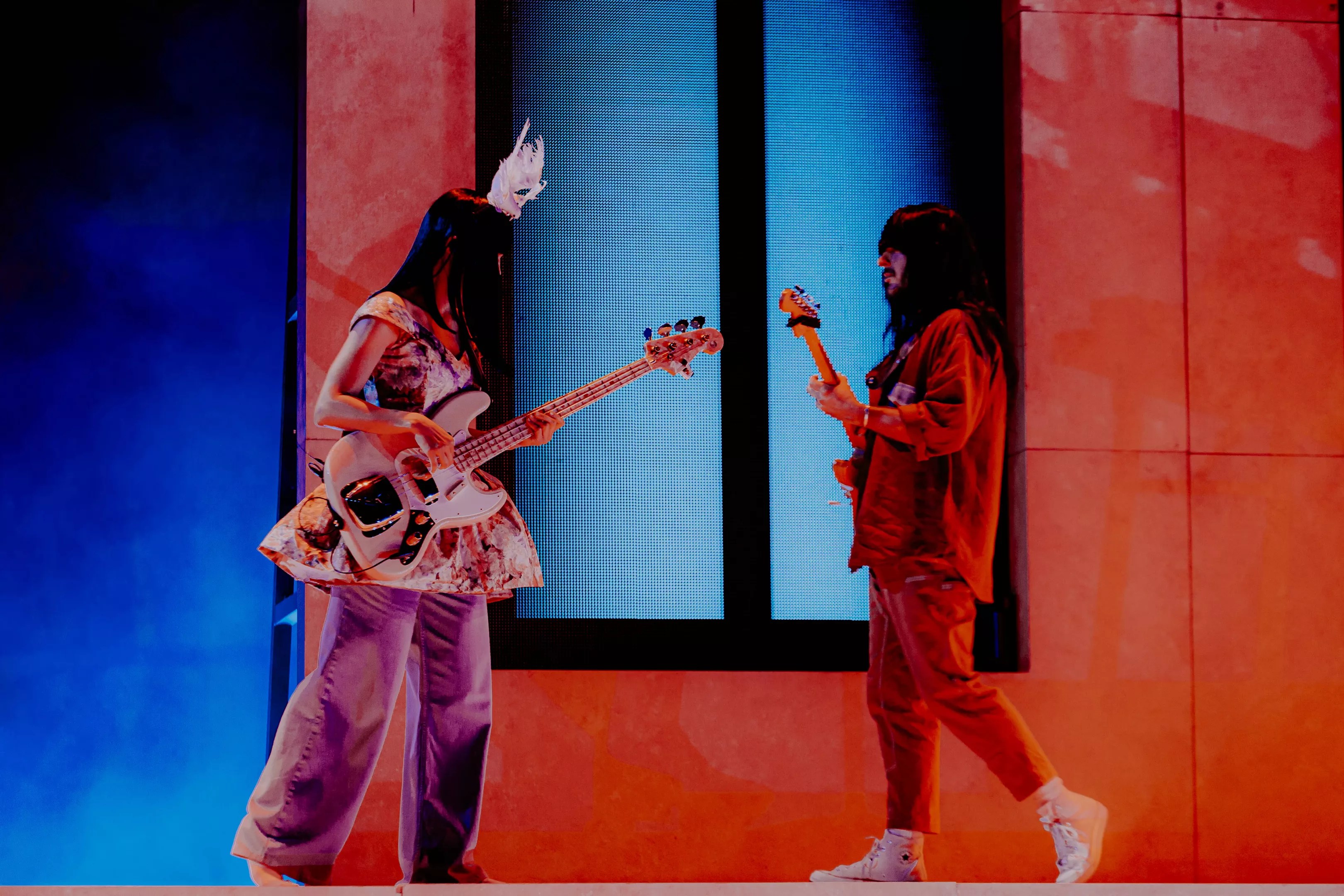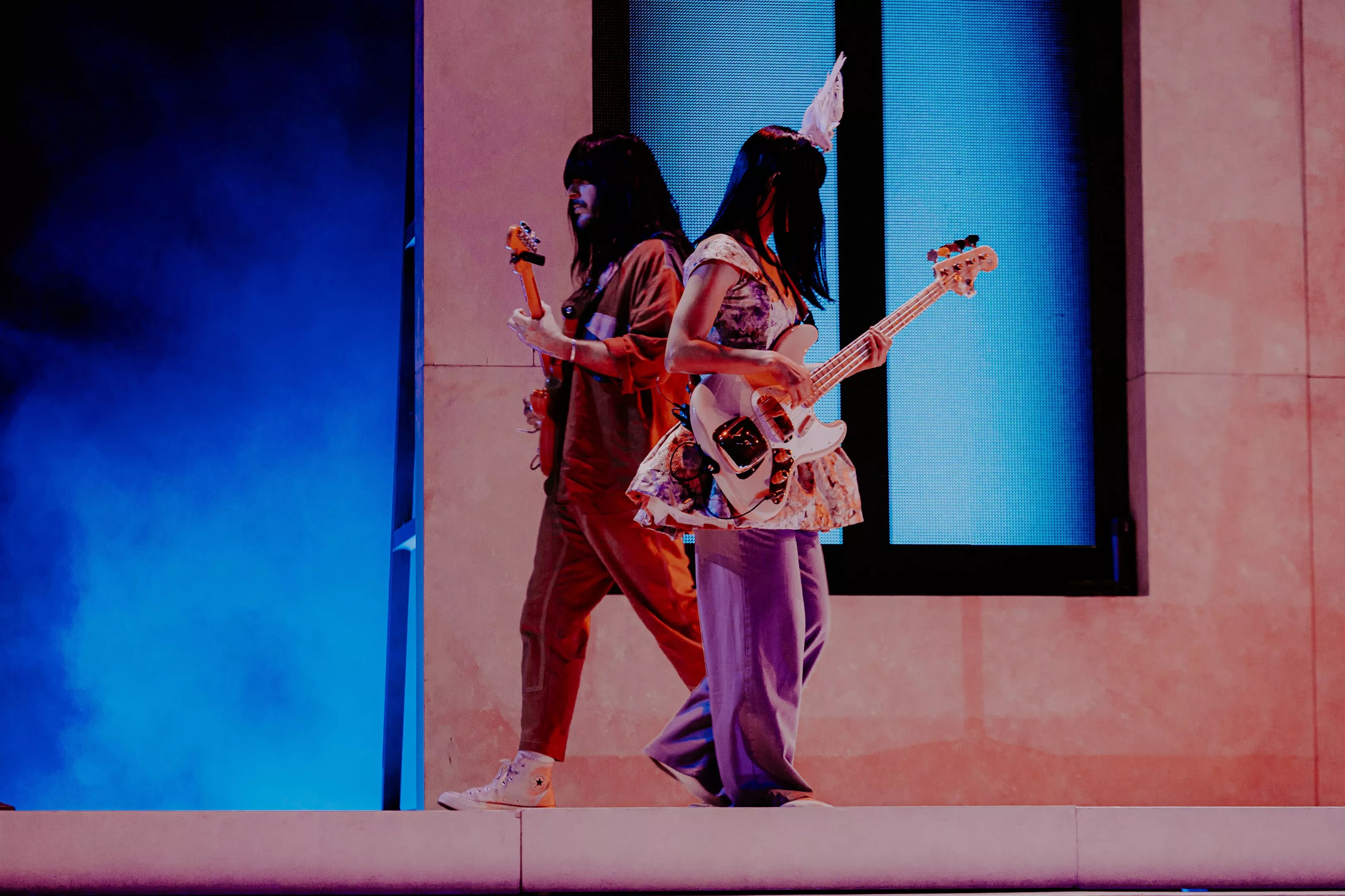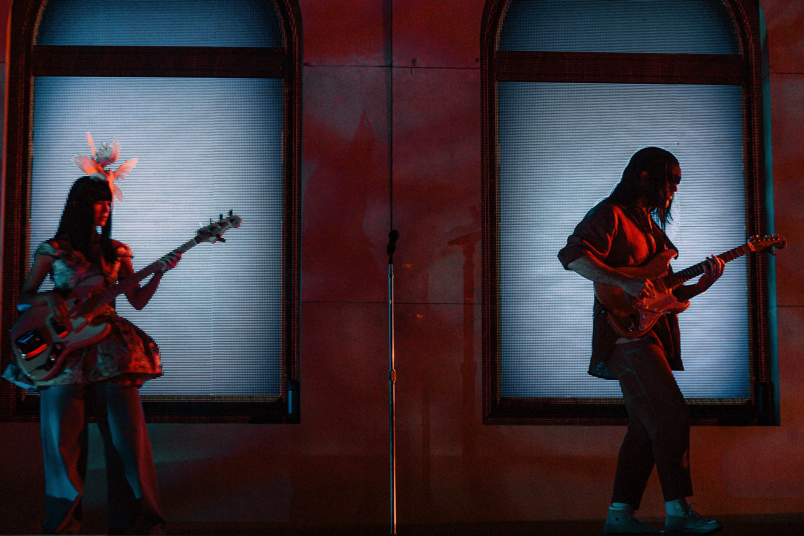 Khruangbin's Laura Lee (left) and Mark Speer (right) rocking out.