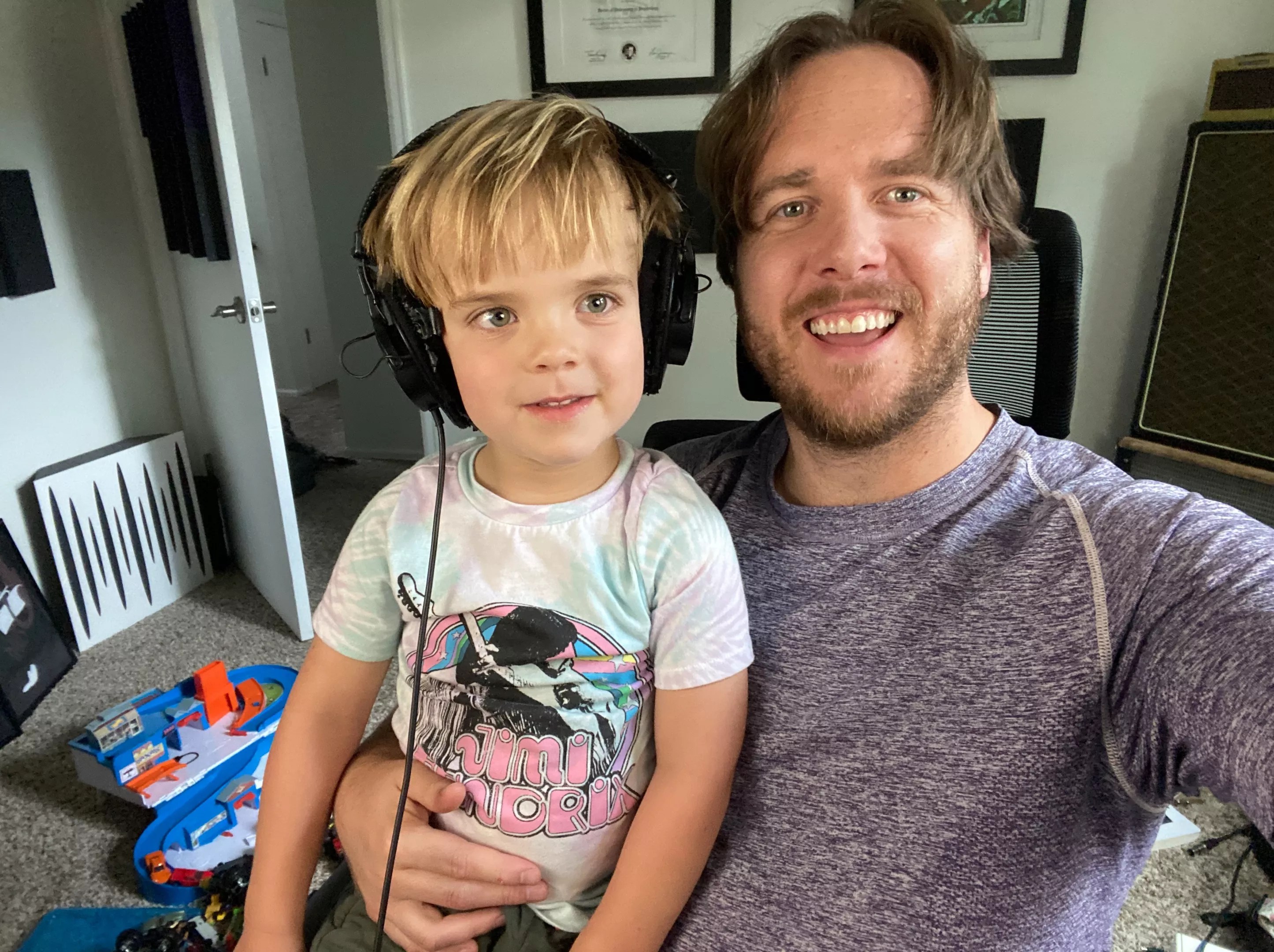 Hendrix, who turns four in December, helps his dad write and workshop songs while banging along on a mini-drum set.