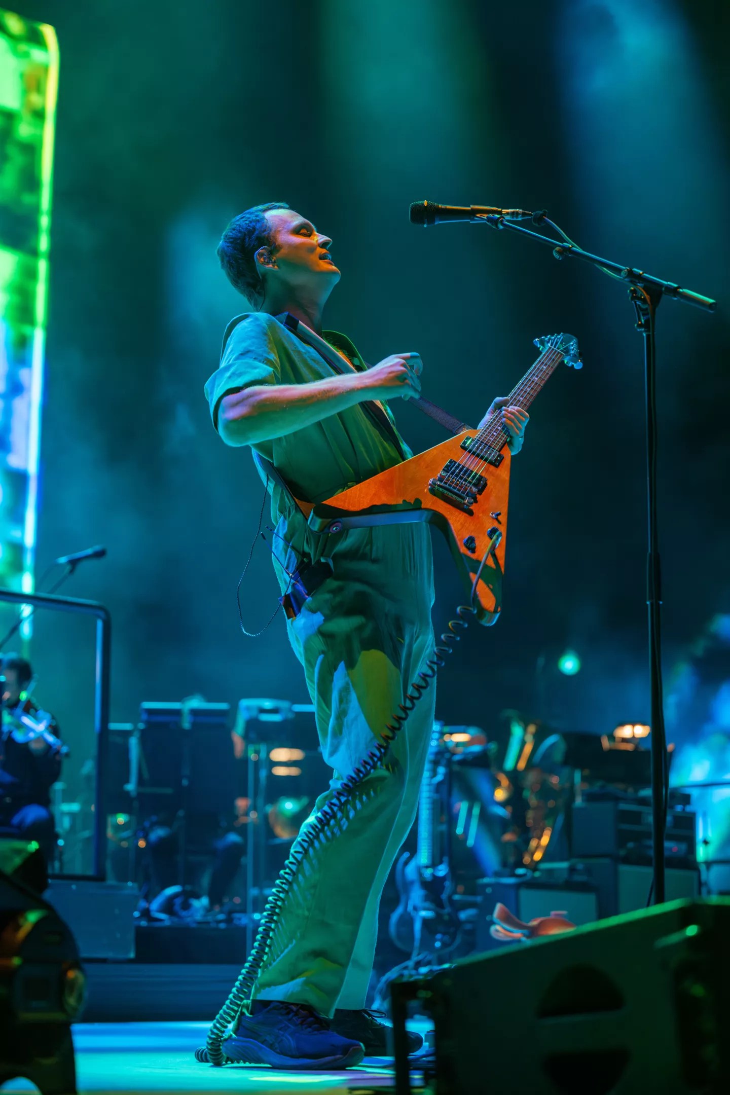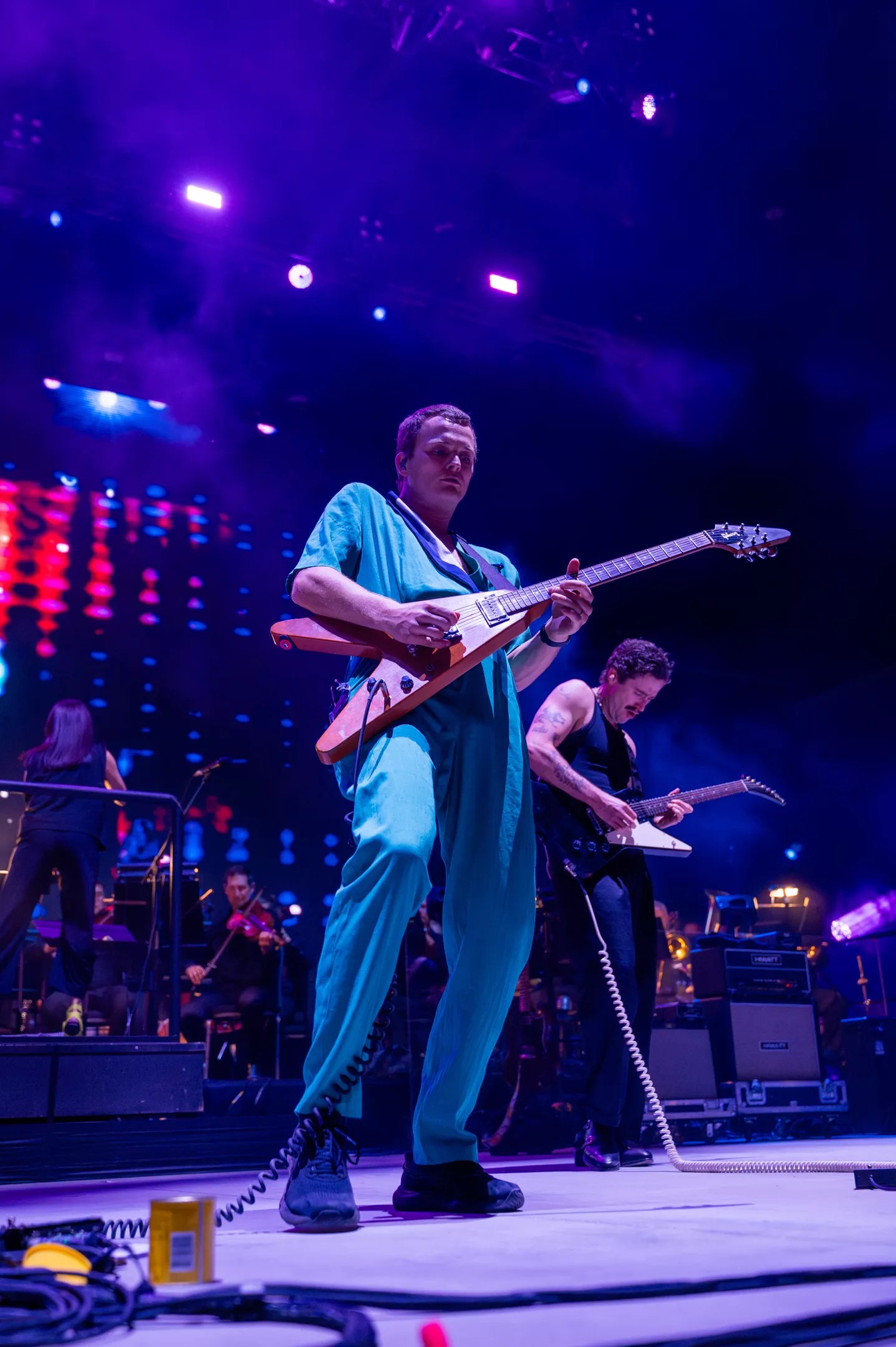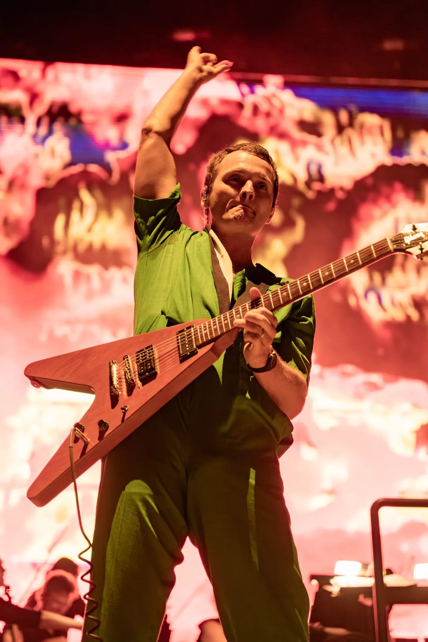 But first, we were treated to opener DJ Crenshaw, who was spinning vinyl ranging from X Ray Specs to the Stooges while stagehands arranged a complex setup for the headliners. As the sun set, members of the Colorado Symphony took their seats as conductor Sarah Hicks took her place. The Phantom Island tour includes a collaboration with a local orchestra at each stop, bringing the symphonic album to life.