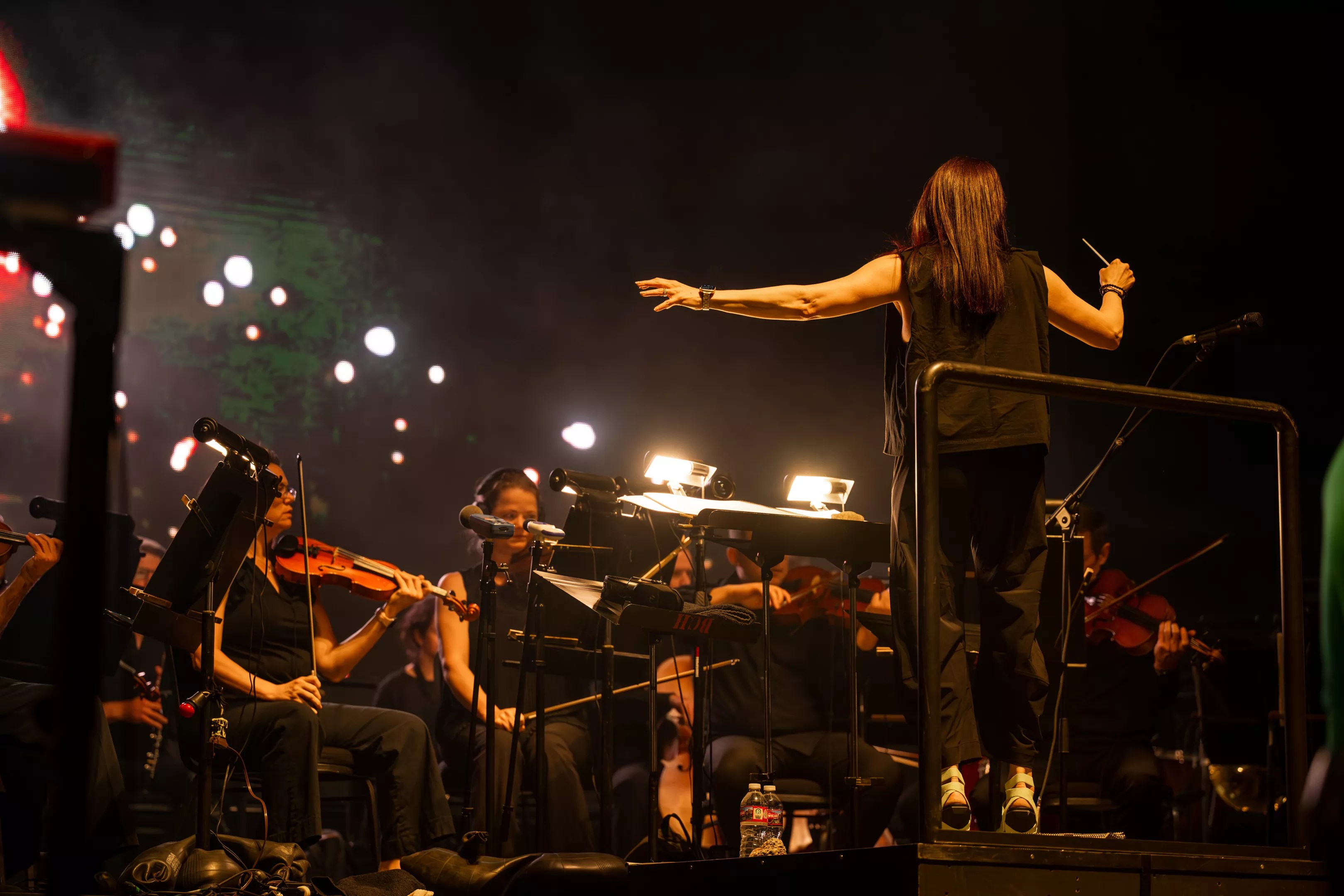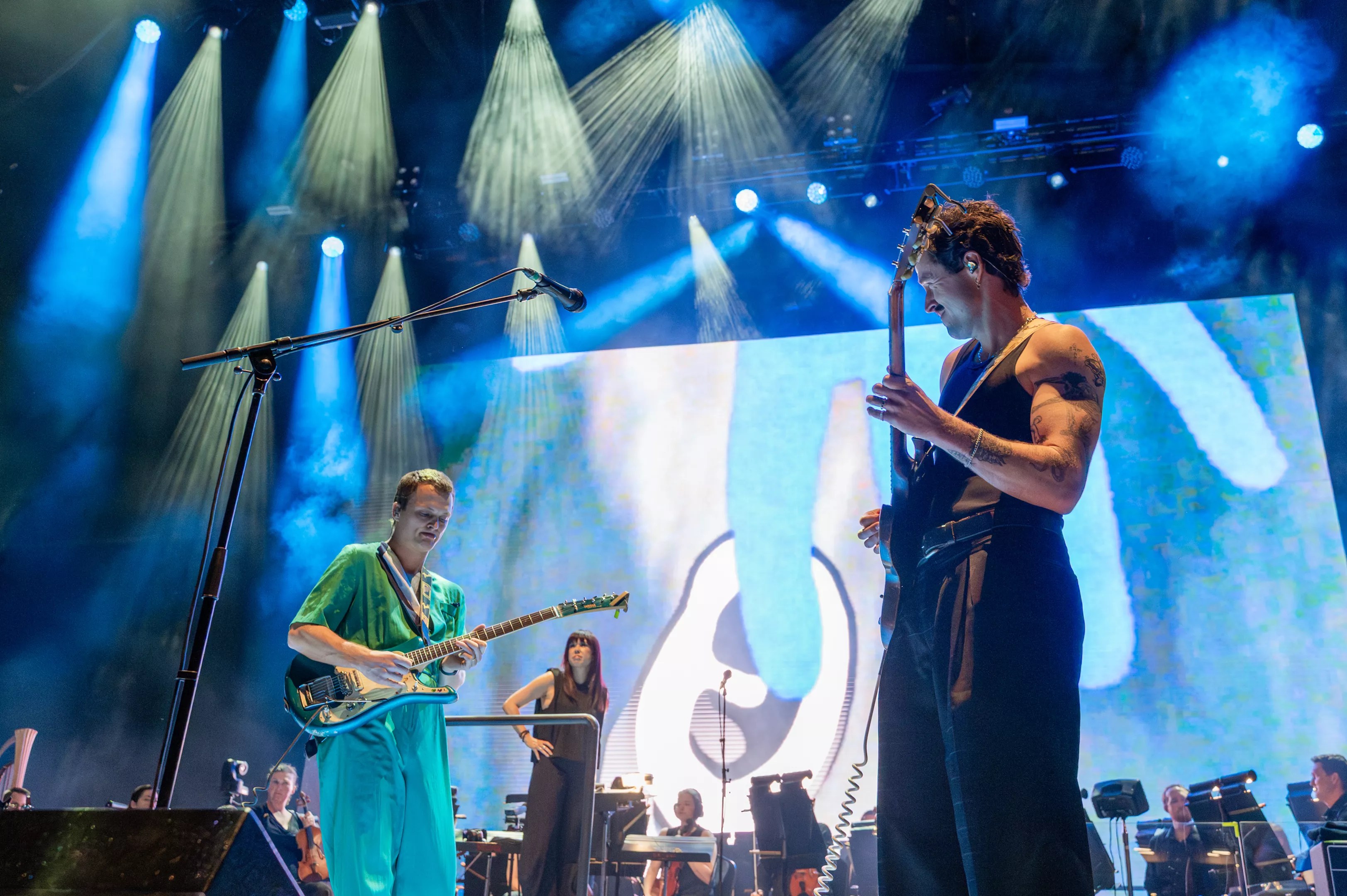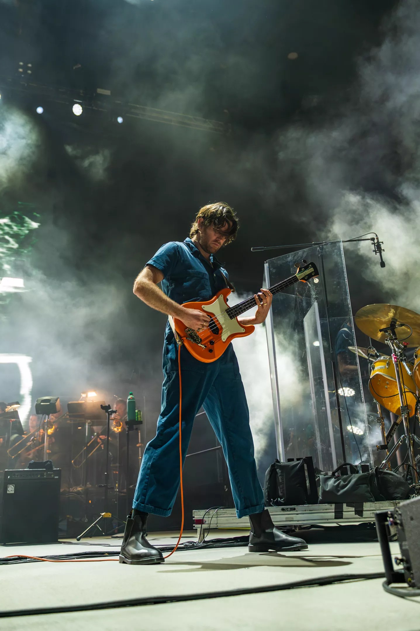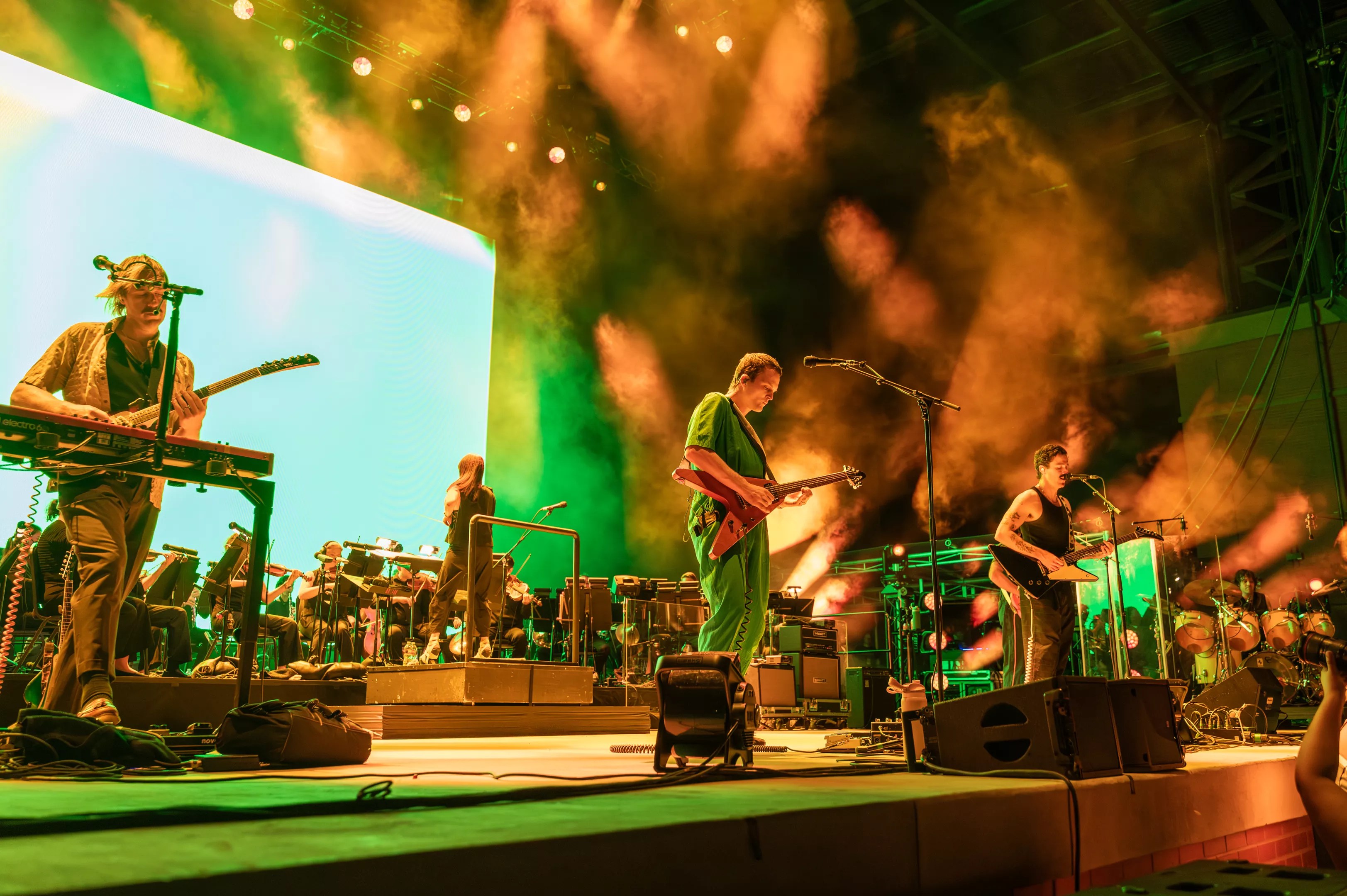 But first, we were treated to opener DJ Crenshaw, who was spinning vinyl ranging from X Ray Specs to the Stooges while stagehands arranged a complex setup for the headliners. As the sun set, members of the Colorado Symphony took their seats as conductor Sarah Hicks took her place. The Phantom Island tour includes a collaboration with a local orchestra at each stop, bringing the symphonic album to life.