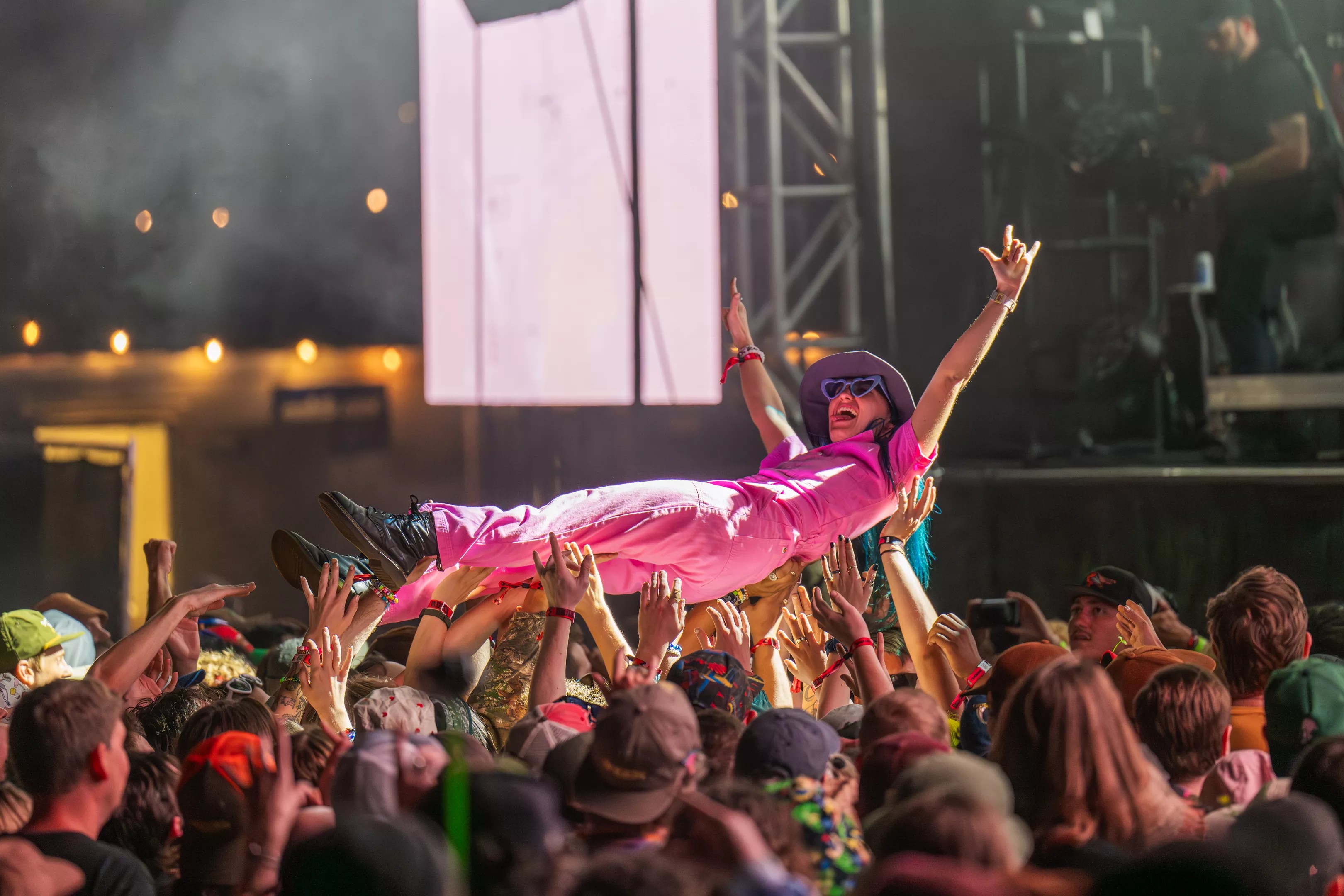Some fans like to film Gizz concerts on vintage recorders. Ross Jones Fans crowd surf for the entire length of the show. Ross Jones The sunset behind the mountains and stage in Buena Vista. See you next year, King Gizz! Ross Jones